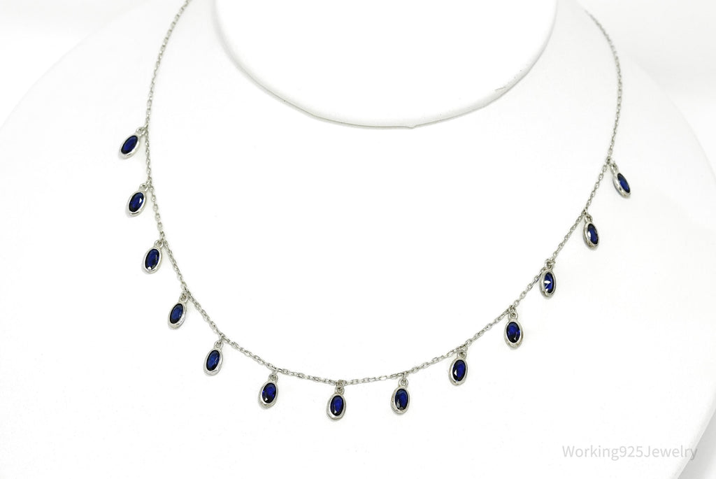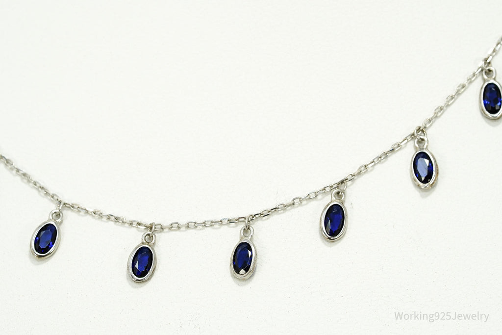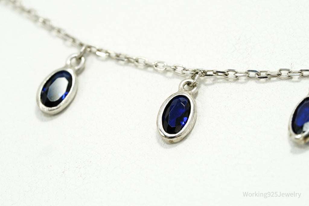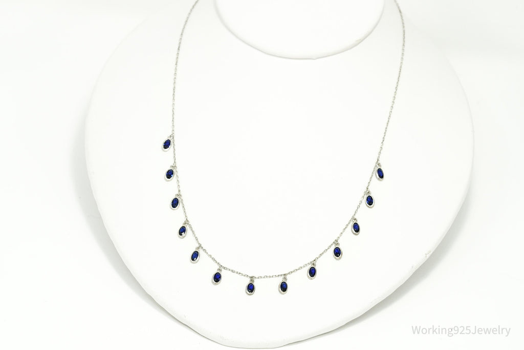 Vintage Blue Spinel Sterling Silver Necklace 18"