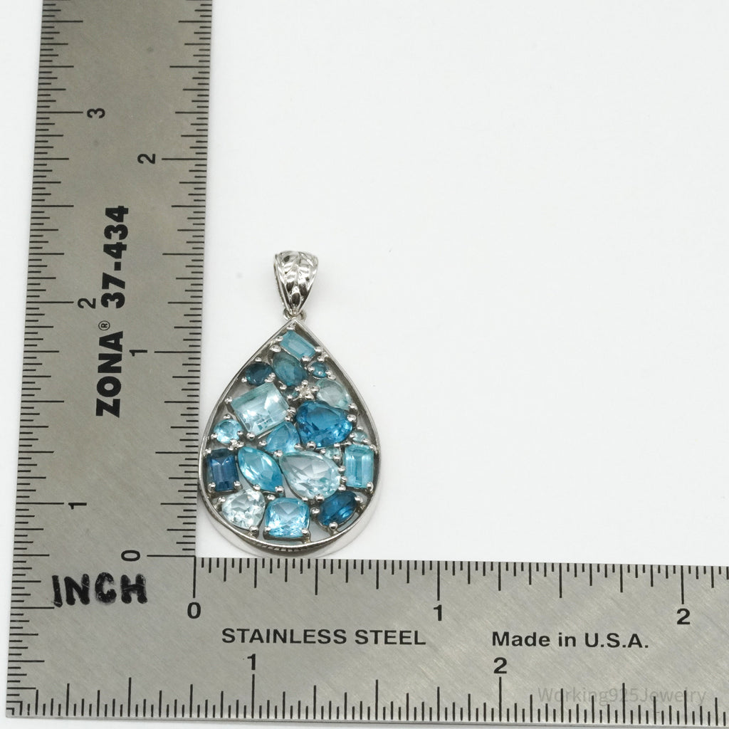 Vintage Blue Topaz Cluster Sterling Silver Necklace Pendant
