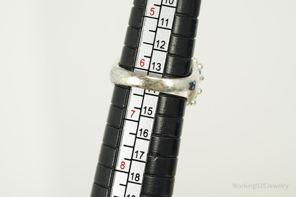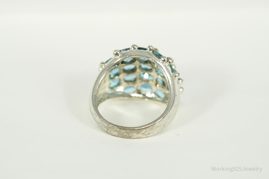 Vintage Blue Topaz Cluster Sterling Silver Ring - Size 6.25
