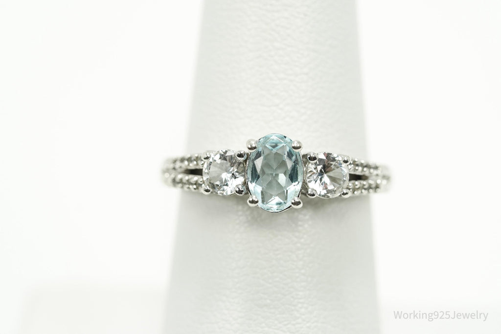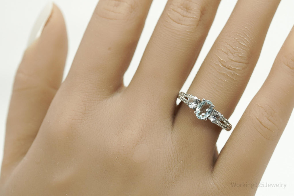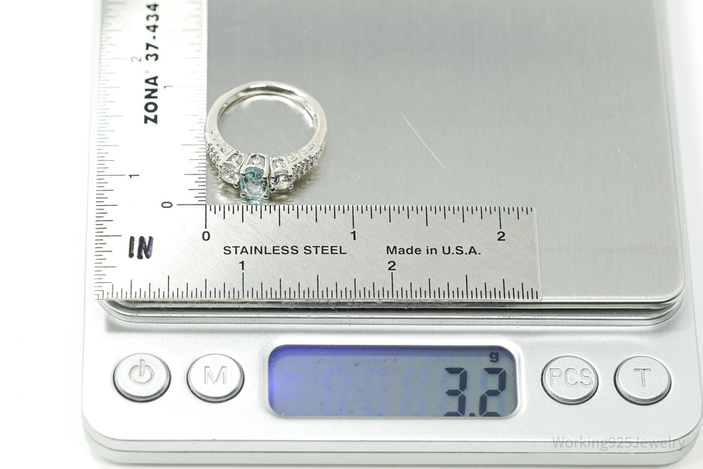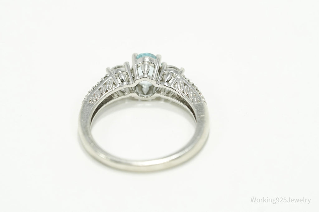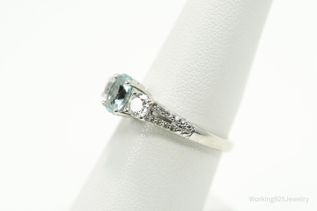 Vintage Blue Topaz & Cubic Zirconia Sterling Silver Ring - Size 7