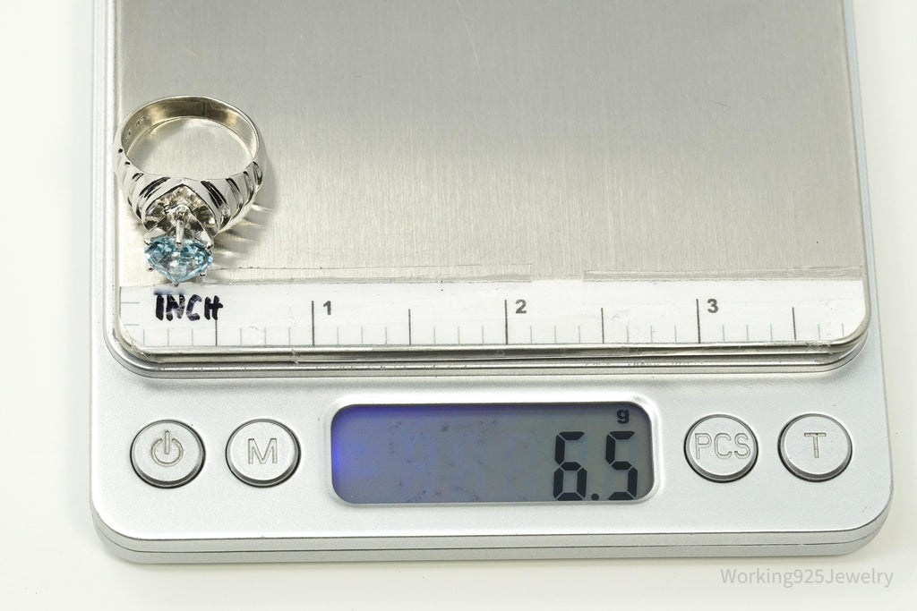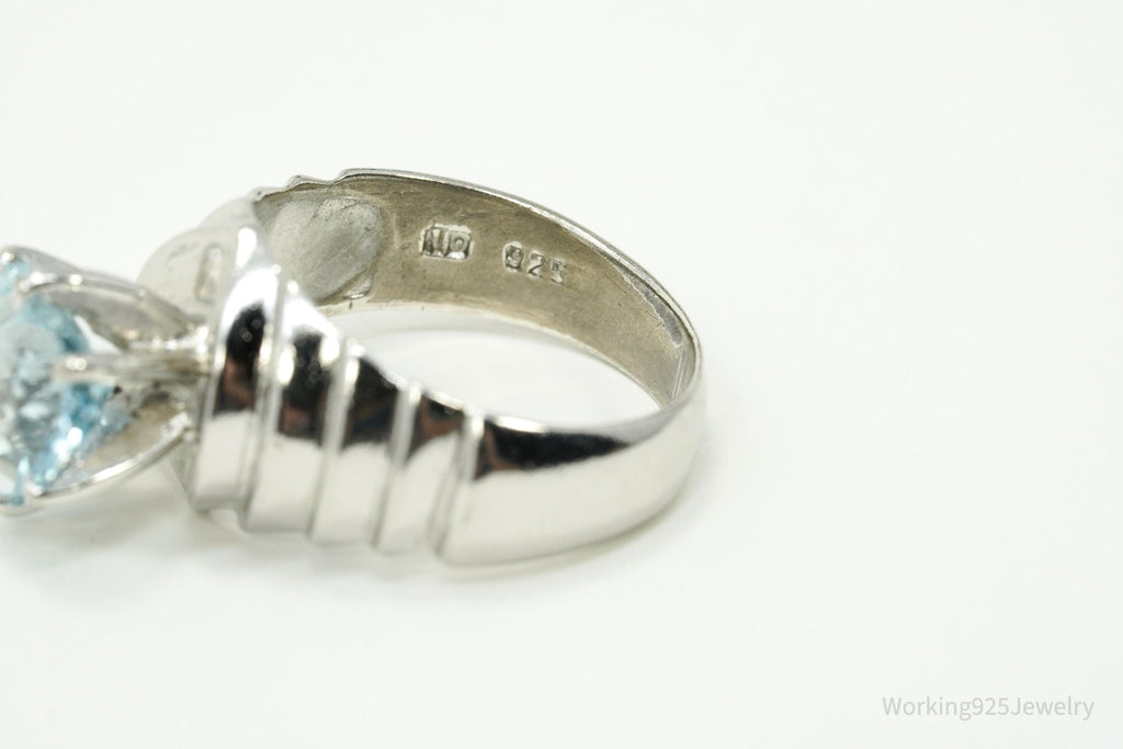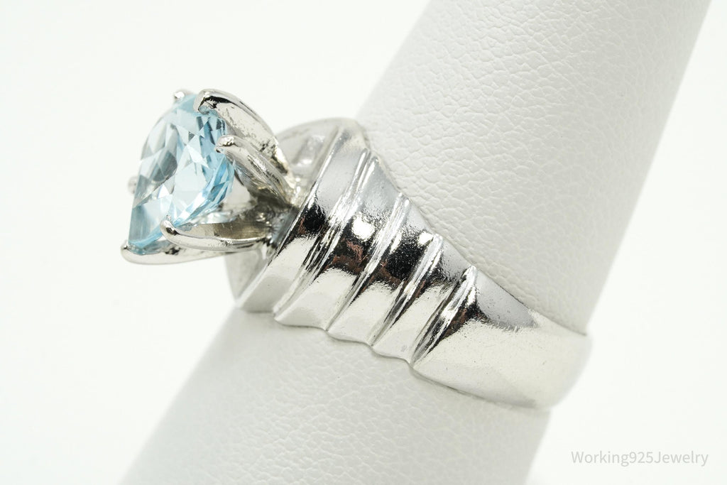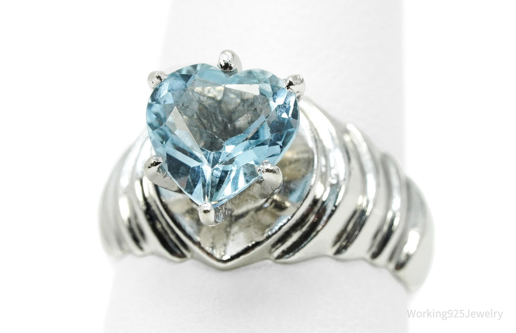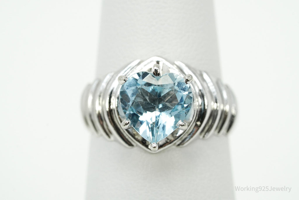 Vintage Blue Topaz Heart Sterling Silver Ring - Size 6.75