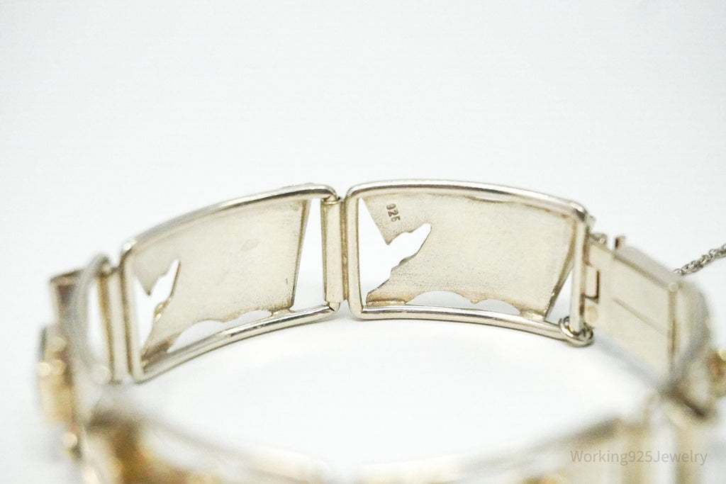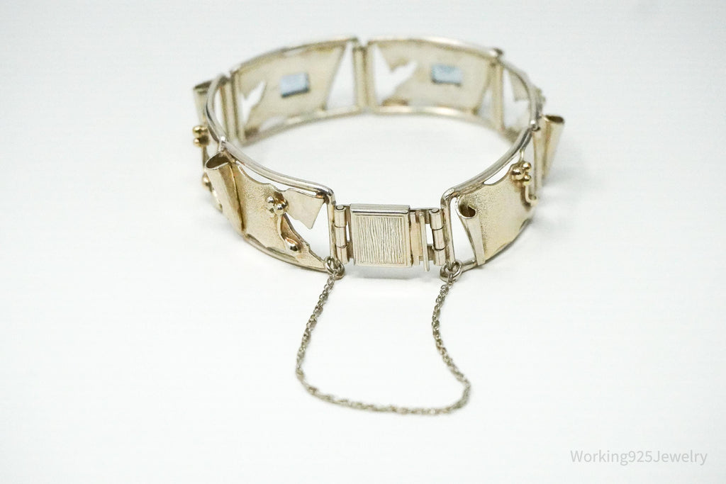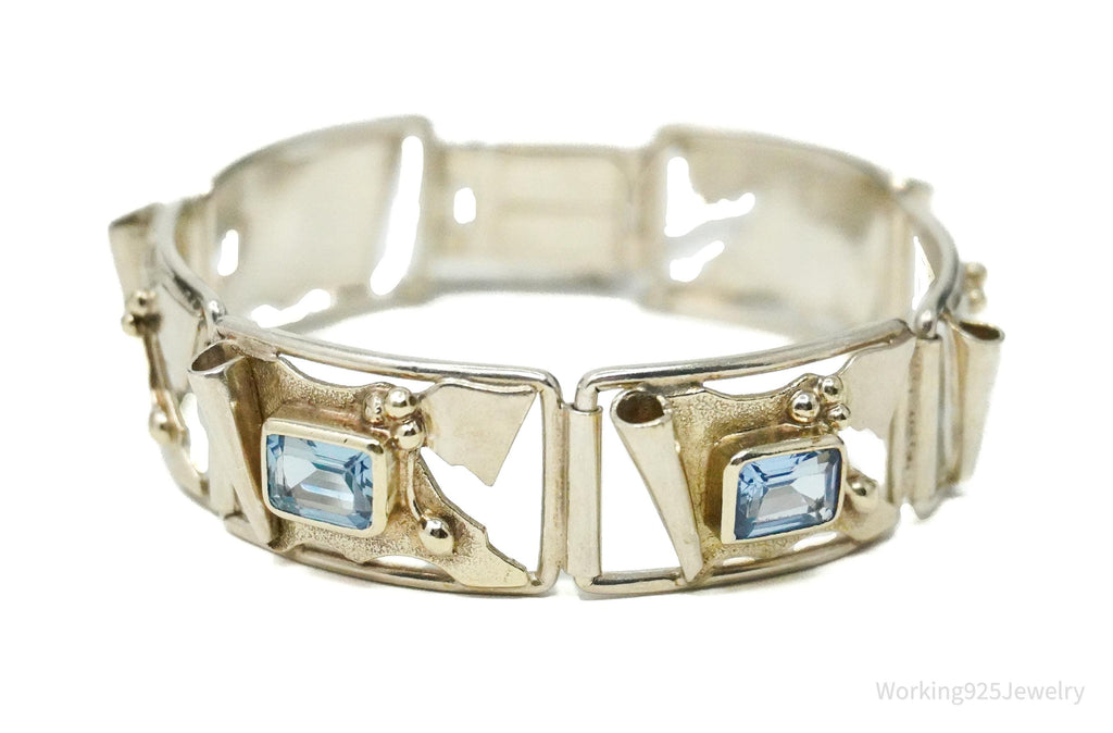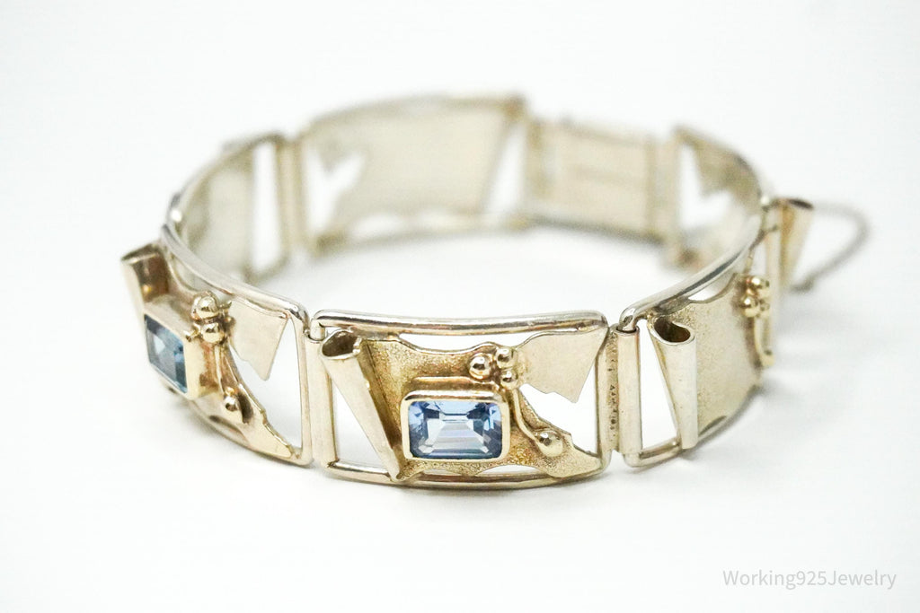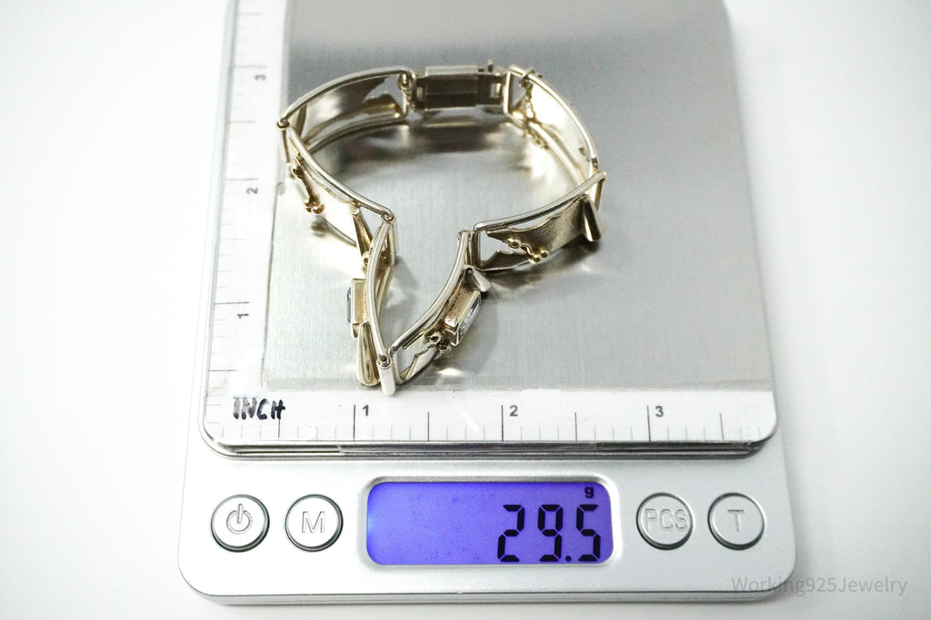 Vintage Blue Topaz Modernist Style Sterling Silver Bracelet - 6.75"