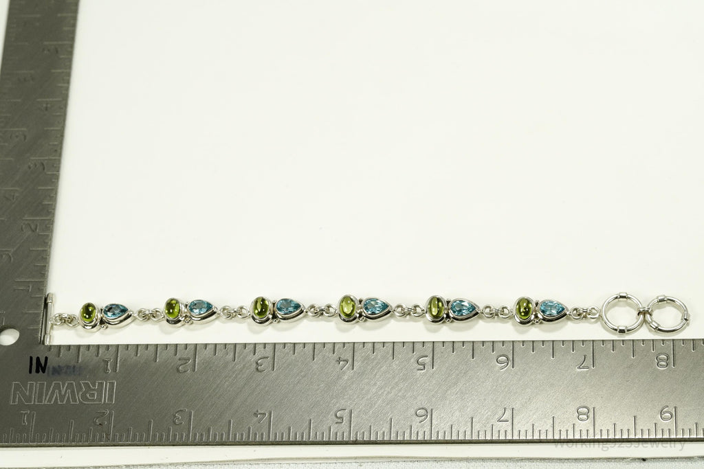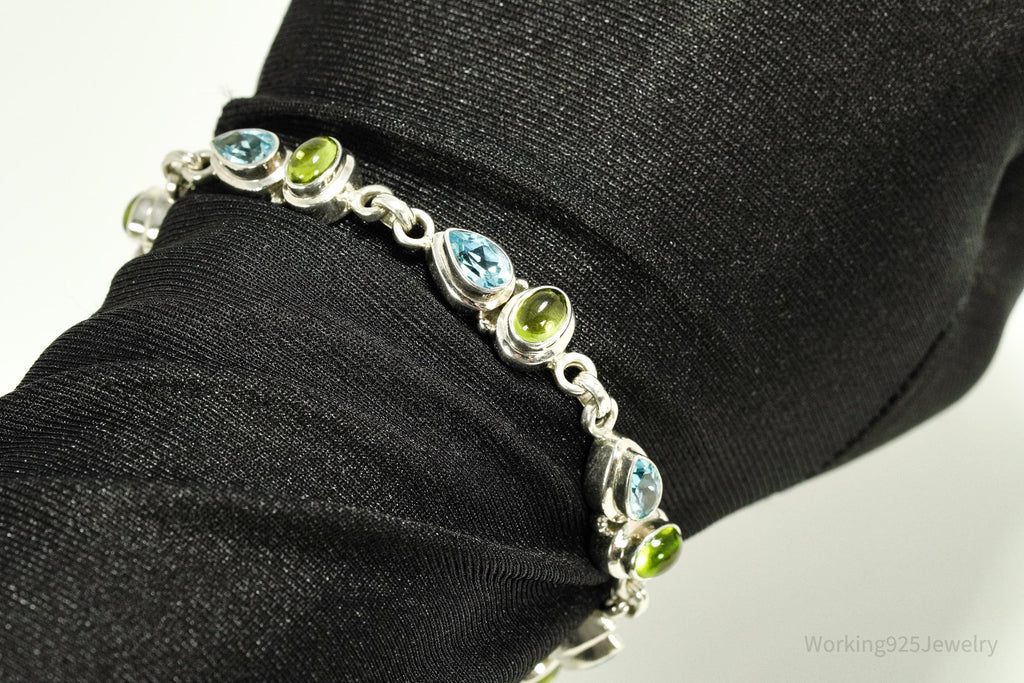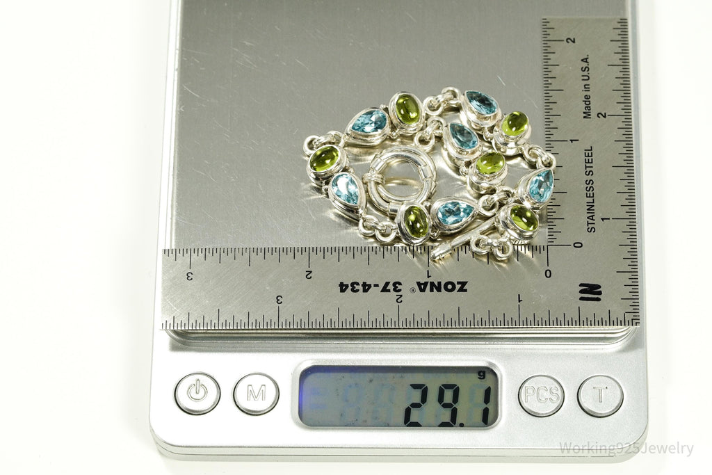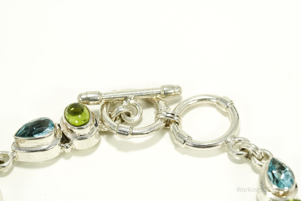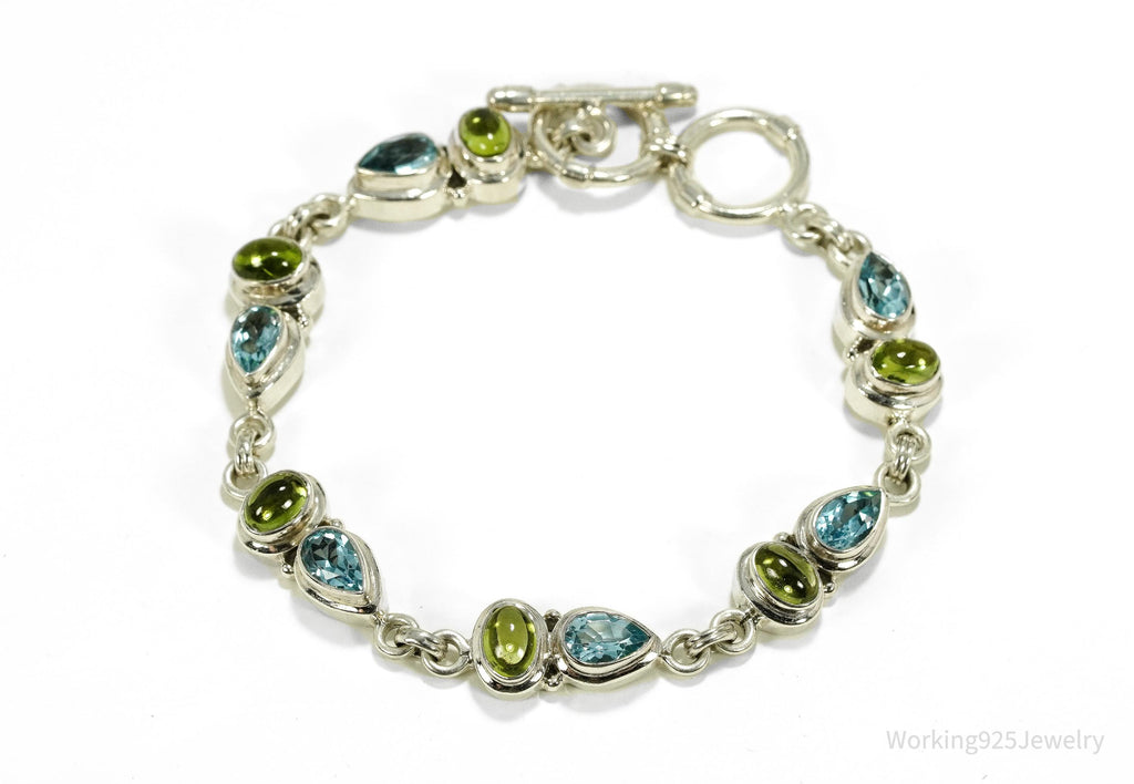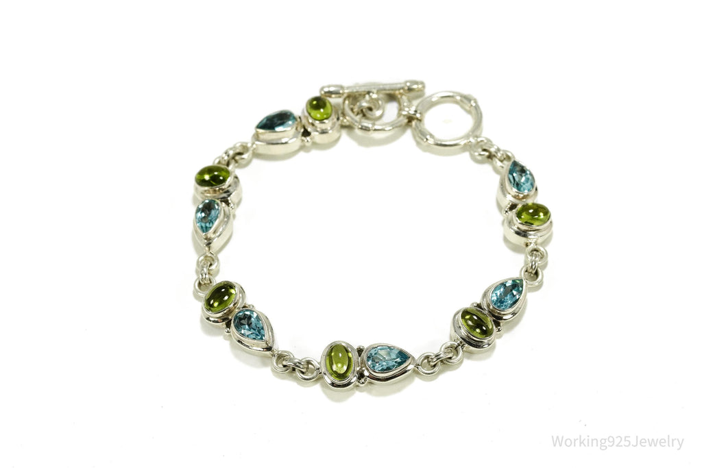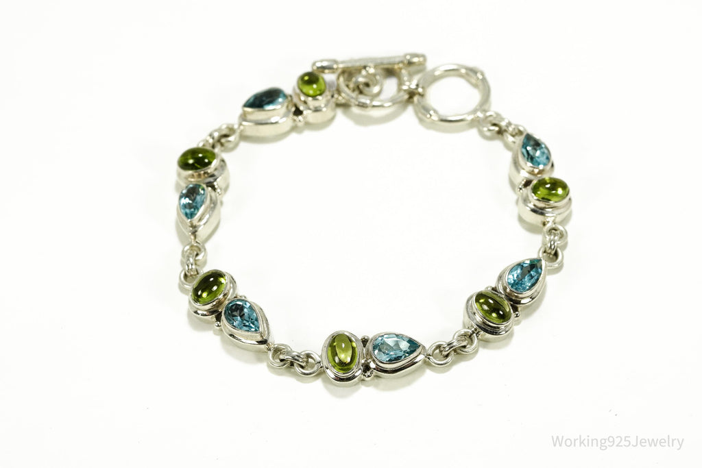 Vintage Blue Topaz & Peridot Sterling Silver Toggle Bracelet 8 1/8"