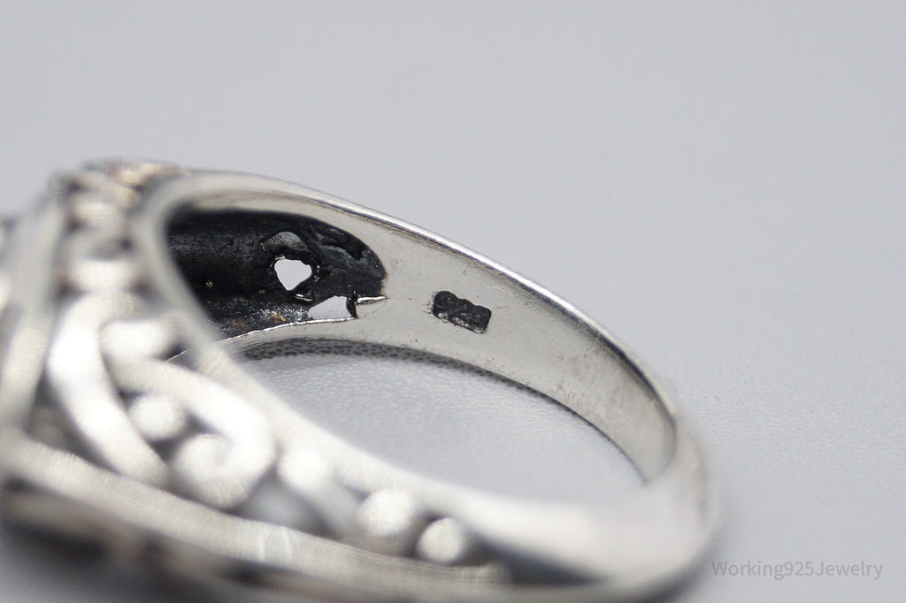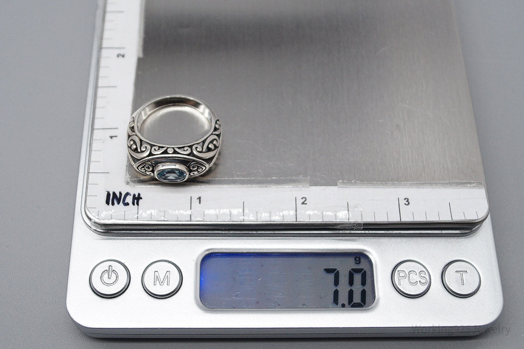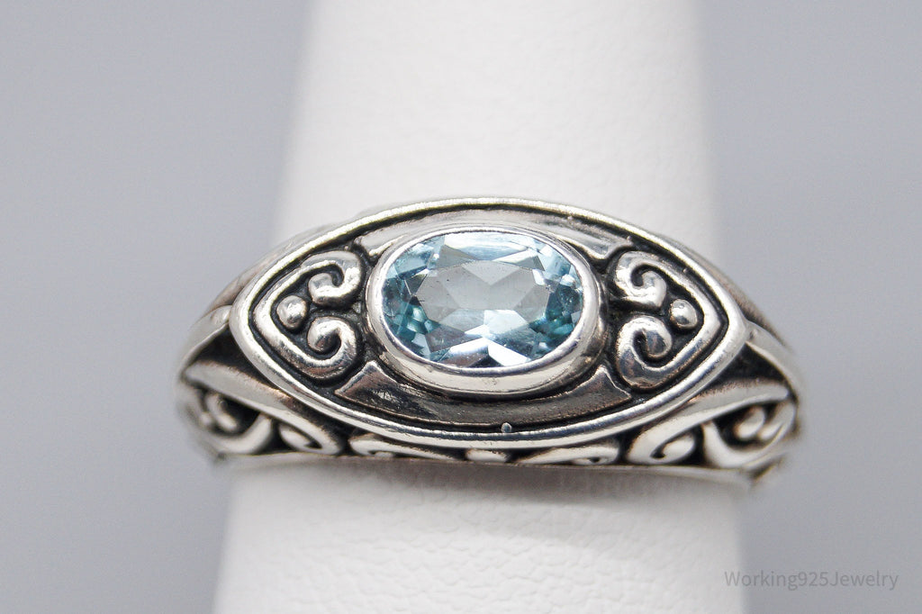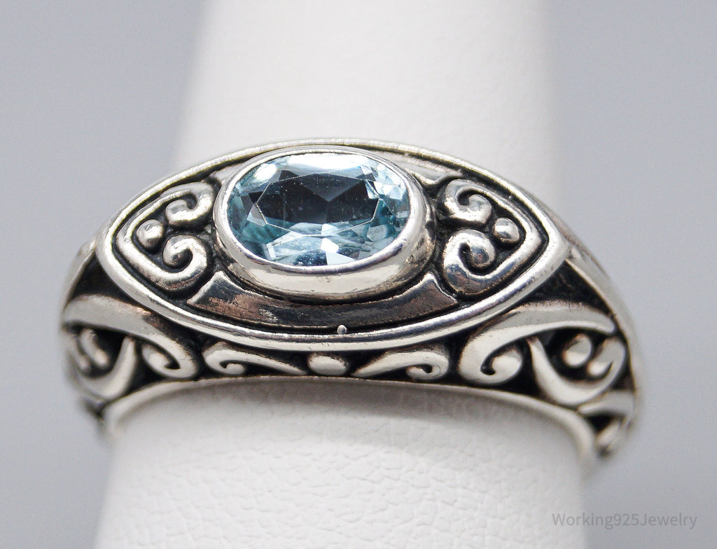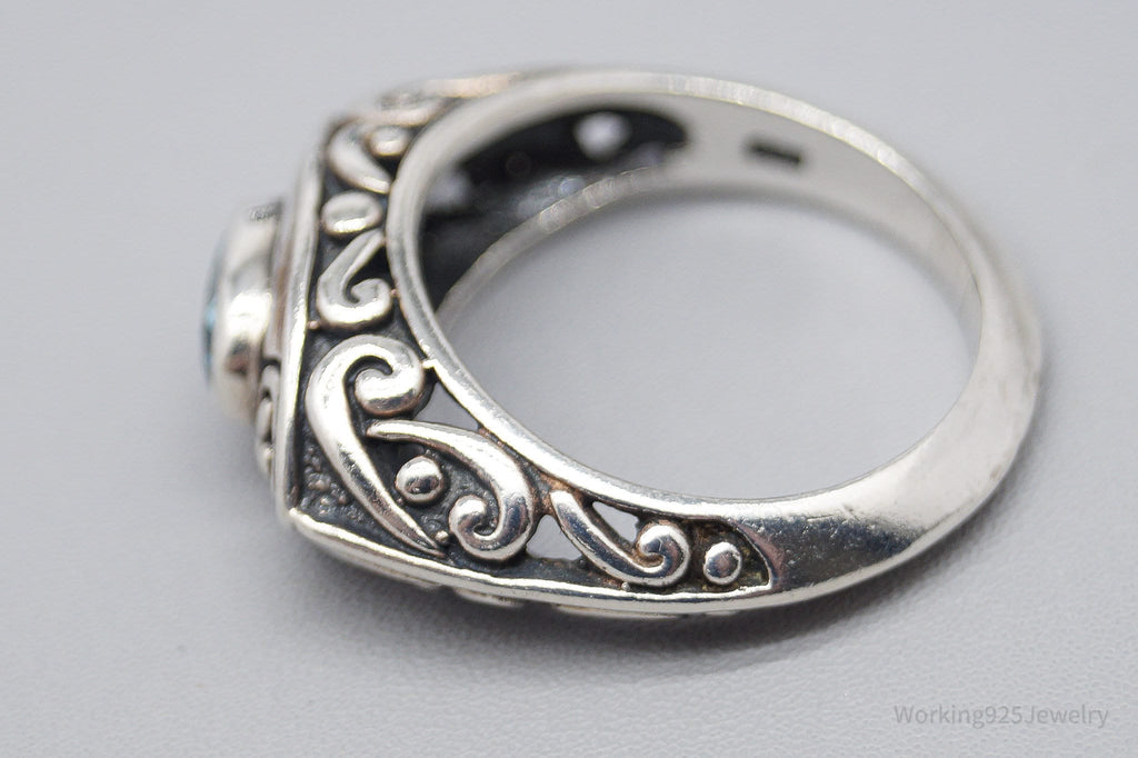 Vintage Blue Topaz Sterling Silver Ring - Size 7.75