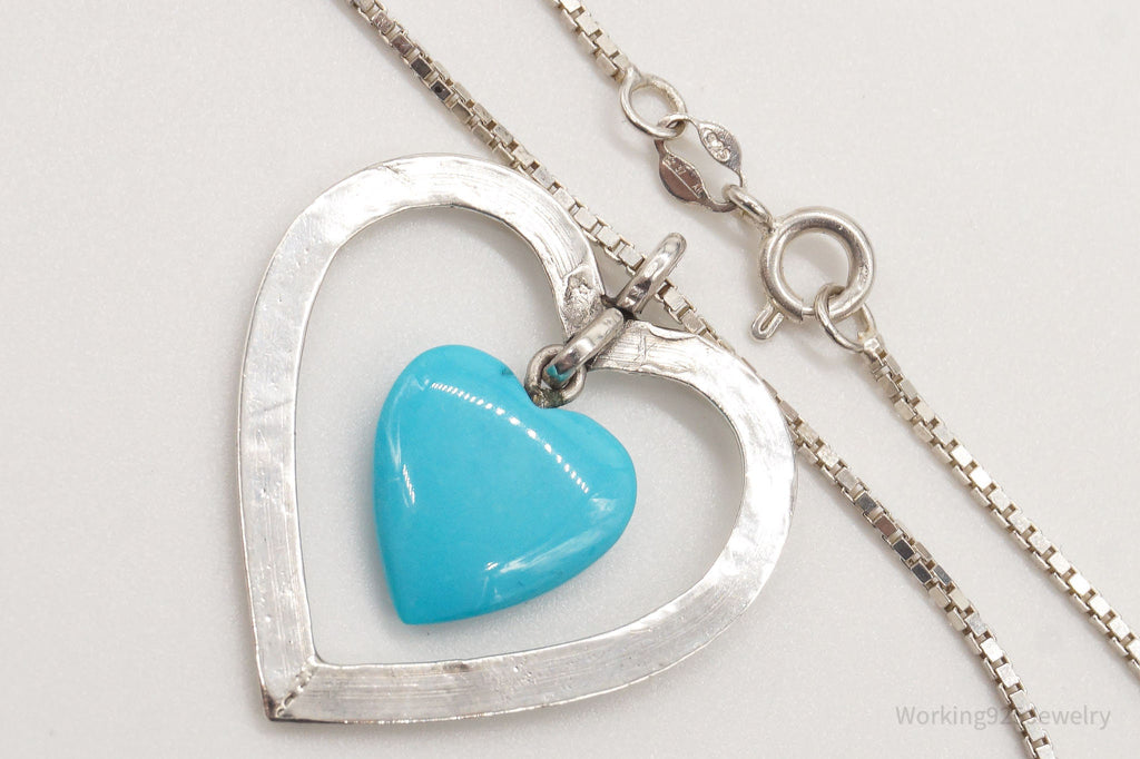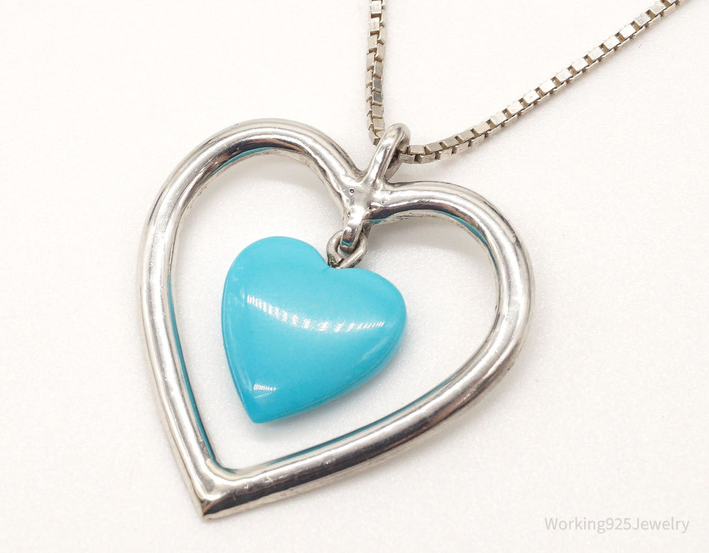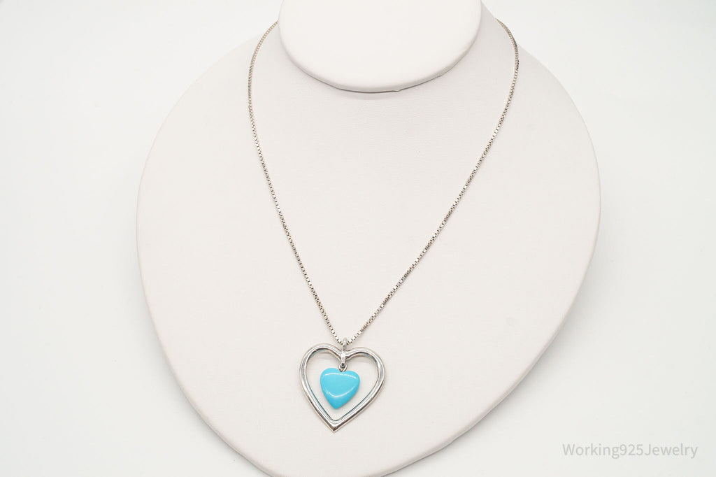 Vintage Blue Turquoise Heart Sterling Silver Necklace