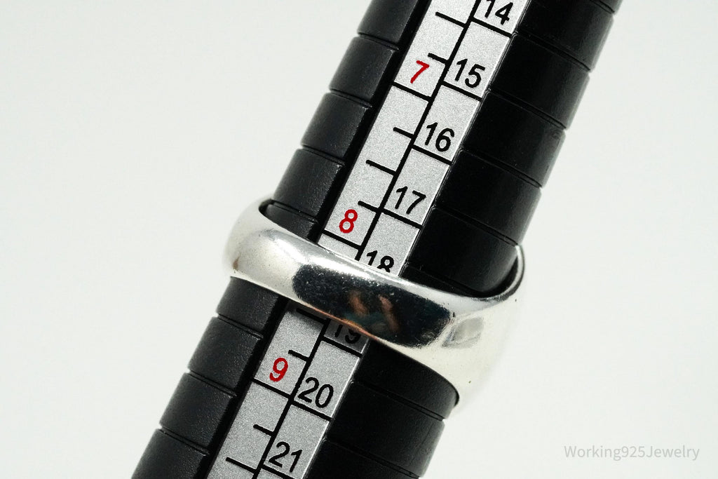 Ring Listings: It is sometimes difficult to determine how a ring will fit without being able to try it on. I always recommend taking your favorite ring to a local jeweler and comparing the way that it sits on a mandrel (ring sizer) with the pictures in the listings prior to purchase. Sometimes wide band rings fit a little differently and I always want my customers to be 100% happy with their purchases! Please let me know if I can help by offering more pictures for size comparison.