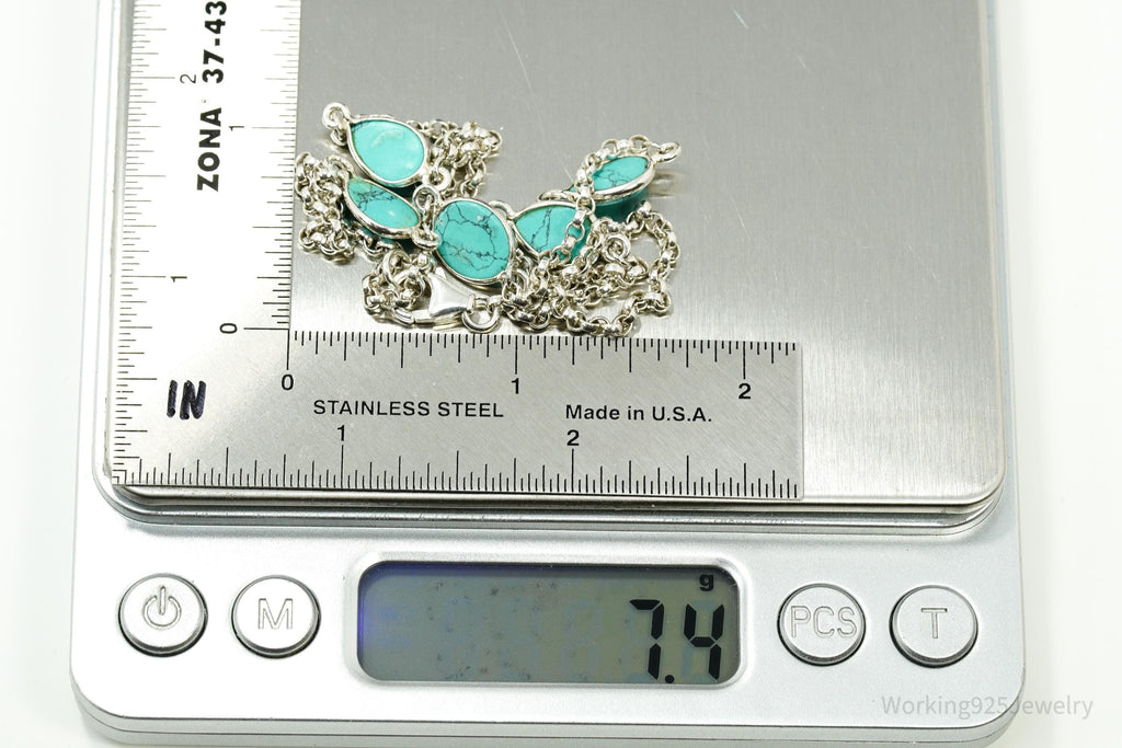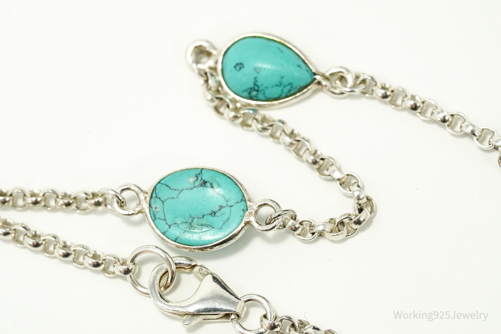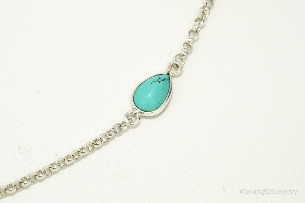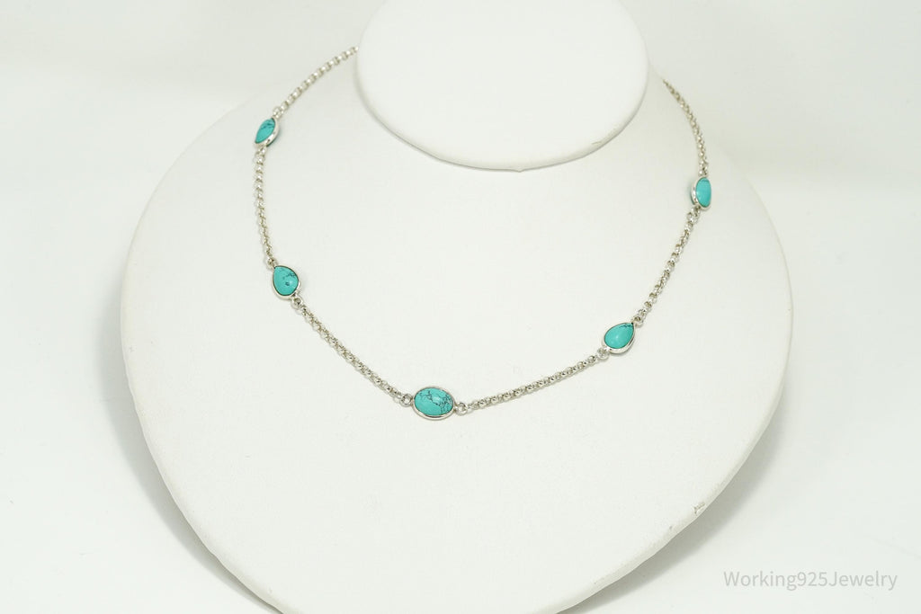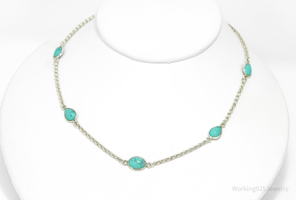 Vintage Blue Turquoise Sterling Silver Necklace 15"