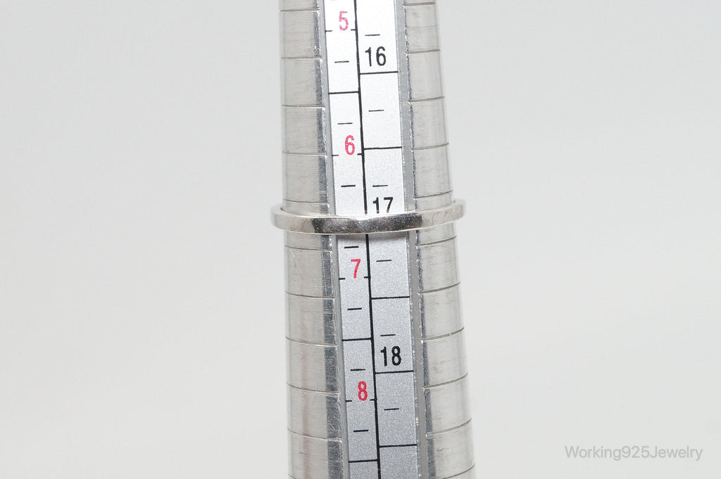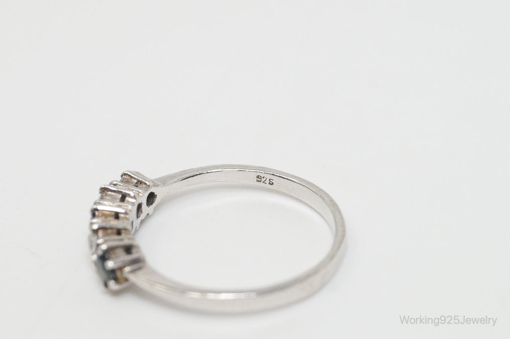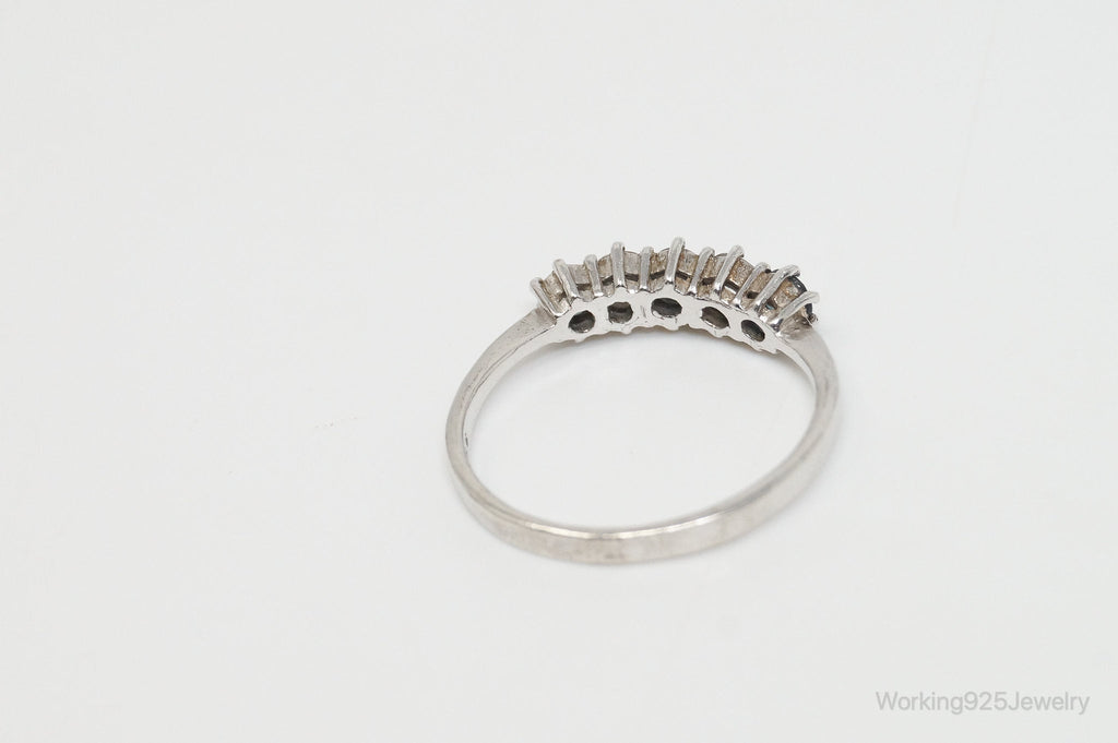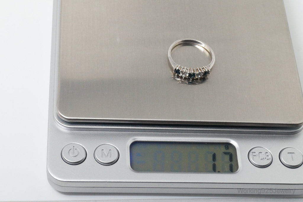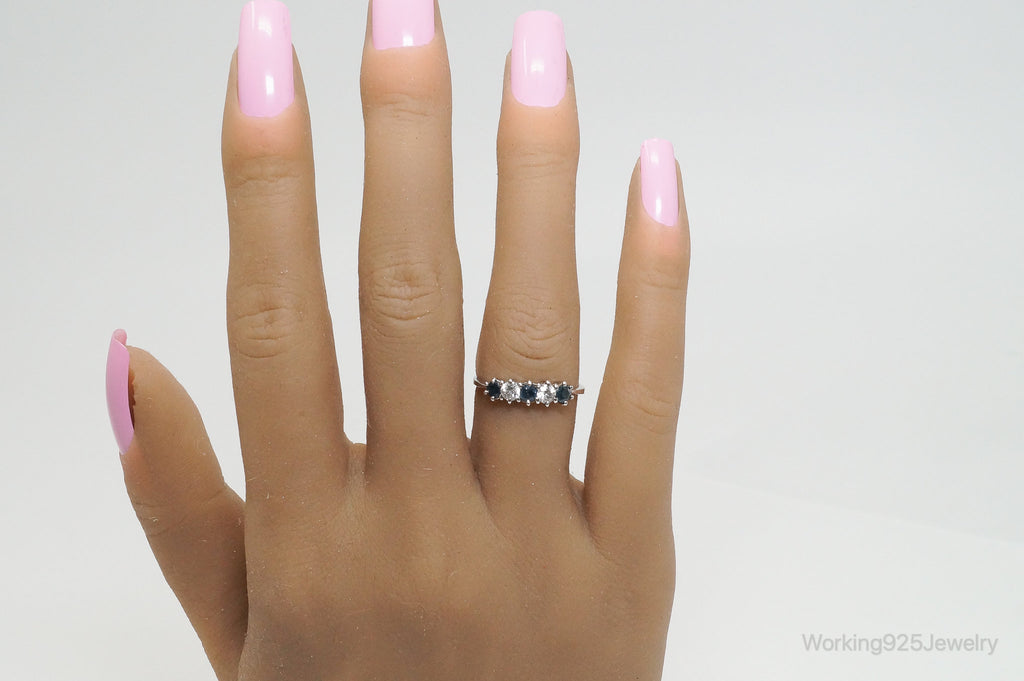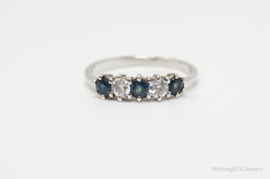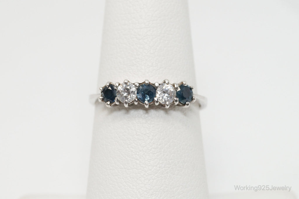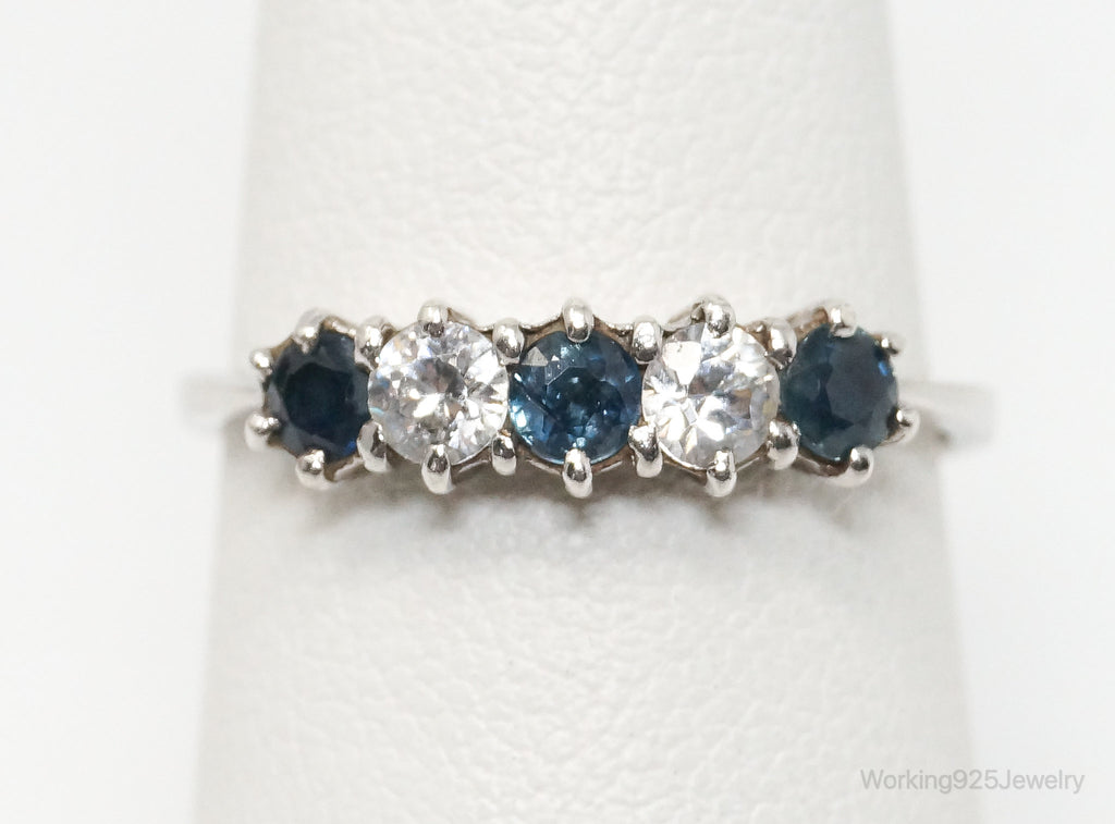 Vintage Blue White Cubic Zirconia Sterling Silver Ring - Size 6.5