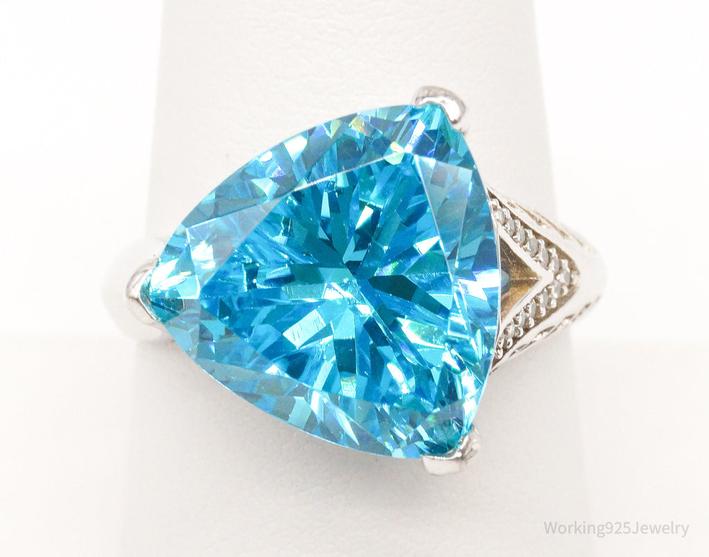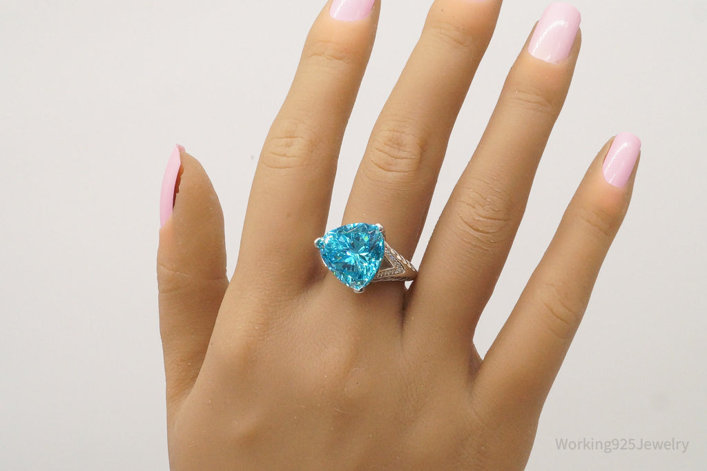 Vintage Blue & White Cubic Zirconia Sterling Silver Ring - Size 8.25
