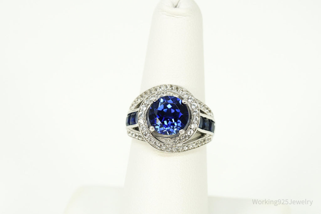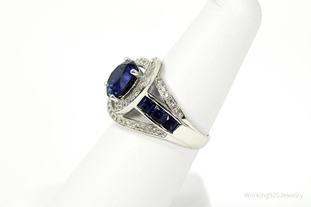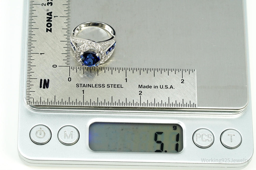 Vintage Blue & White Sapphire Sterling Silver Ring - Size 6.75