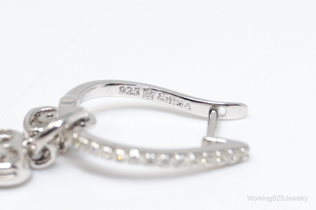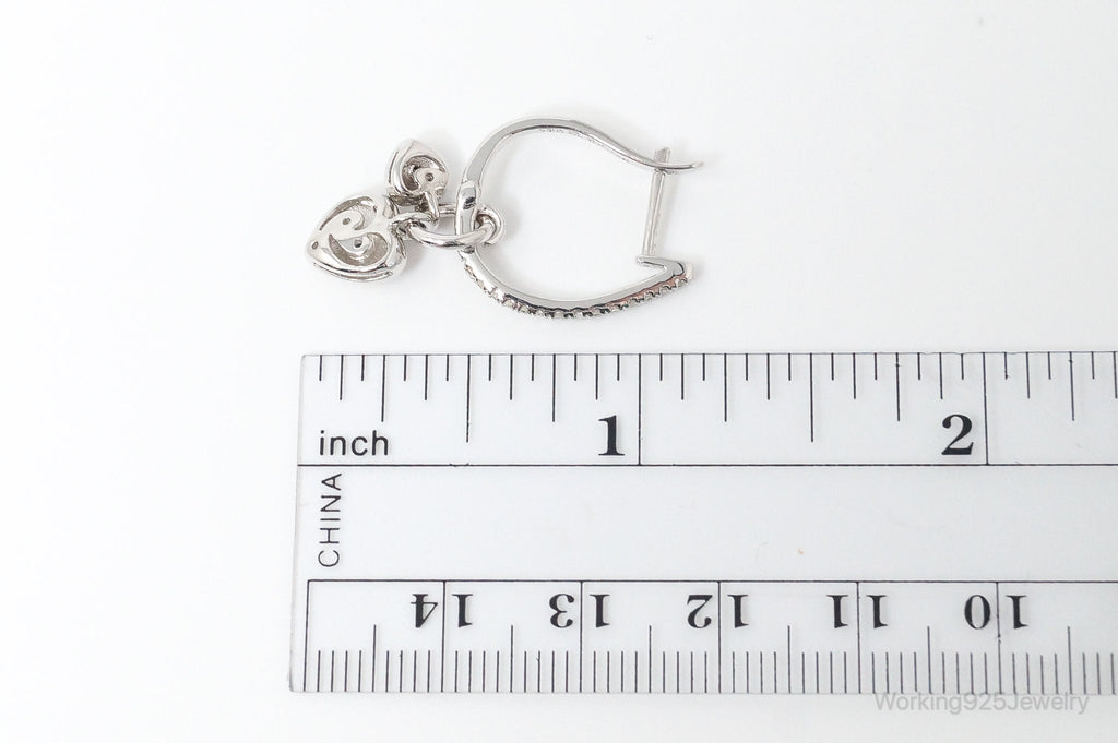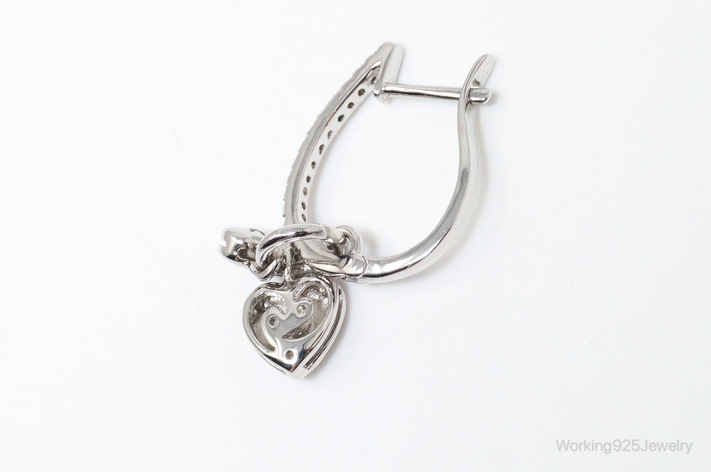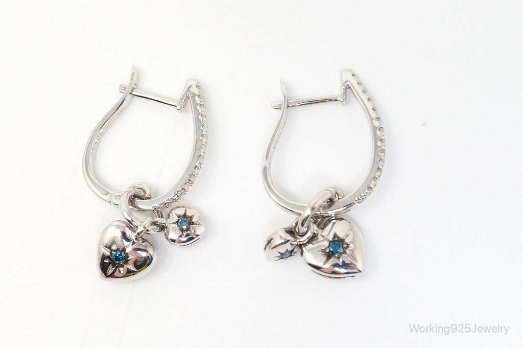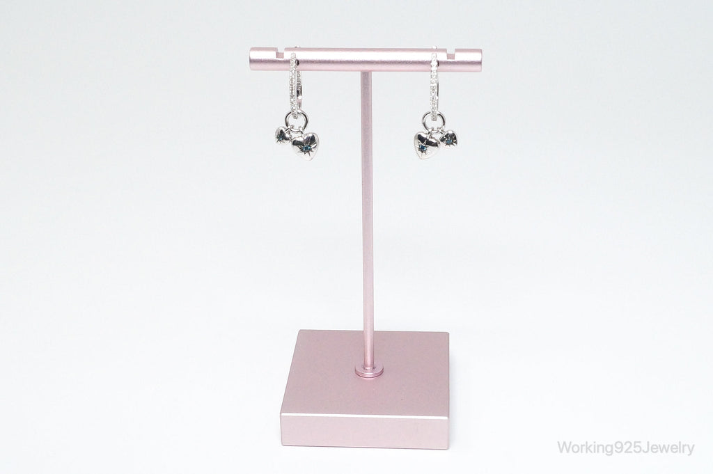 Vintage Blue Zircon Cubic Zirconia Sterling Silver Hearts Earrings