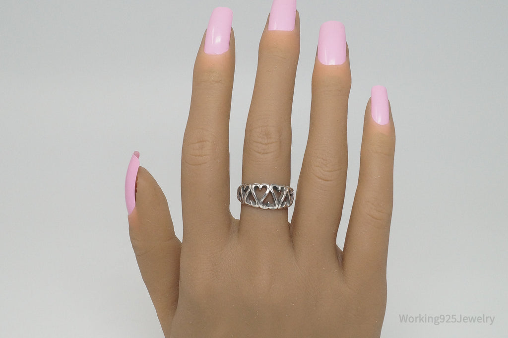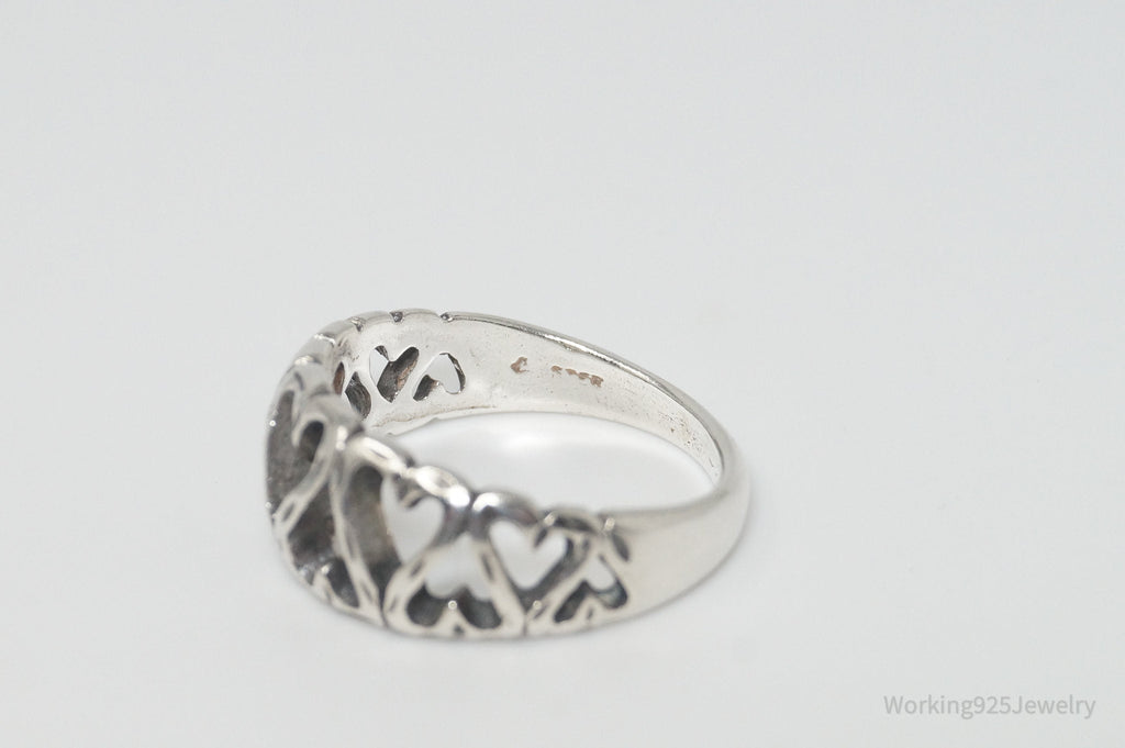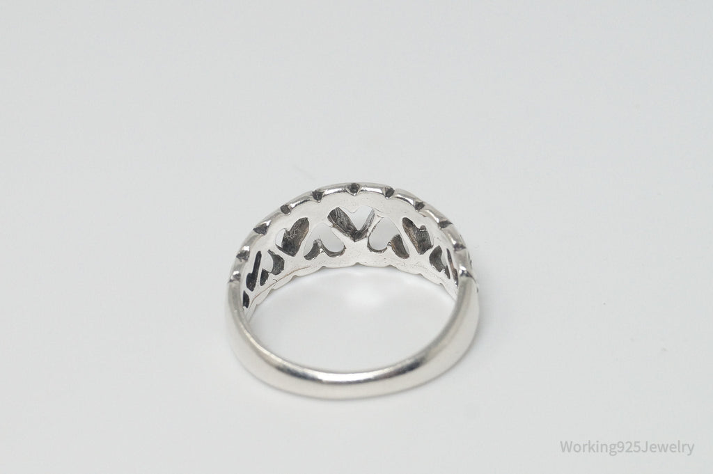 Vintage Bonded Hearts Pattern Sterling Silver Ring - Size 7