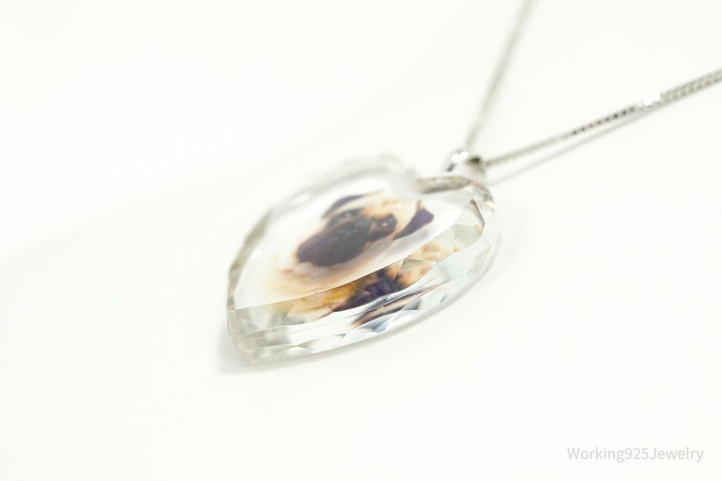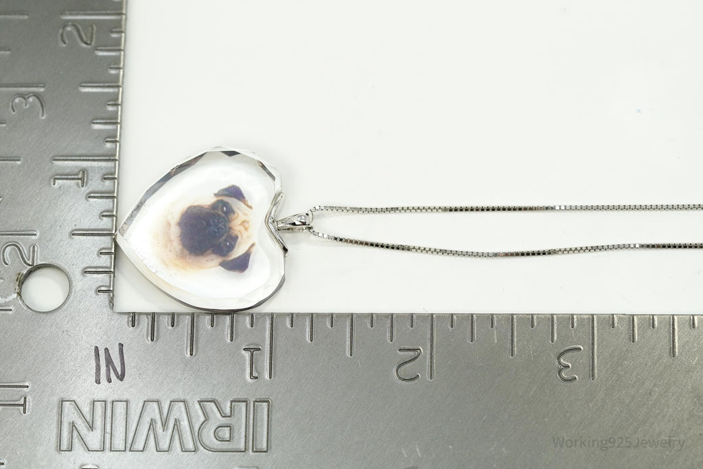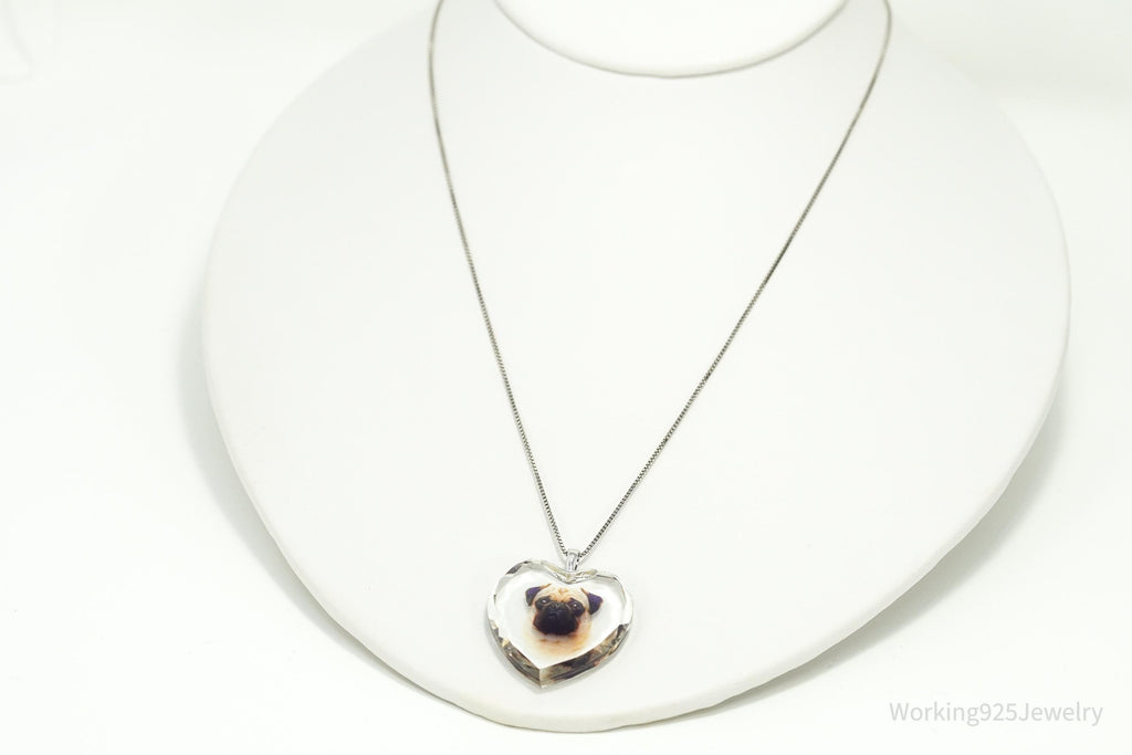 Vintage Bradford Exchange Pug Face In A Radiant Glass Heart Sterling Silver Chain Necklace - 18"