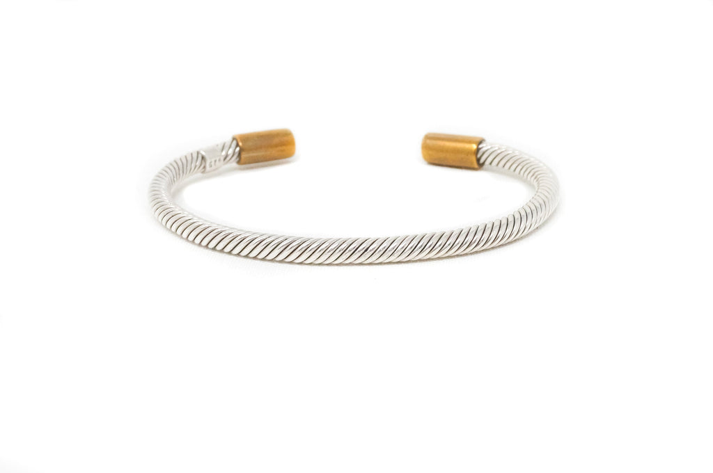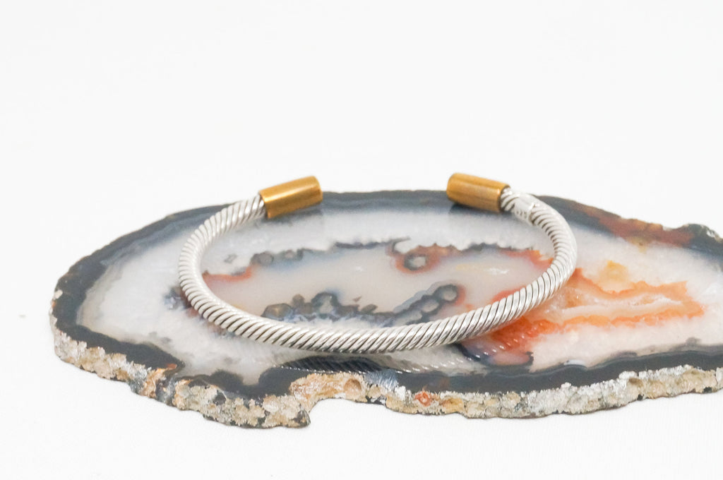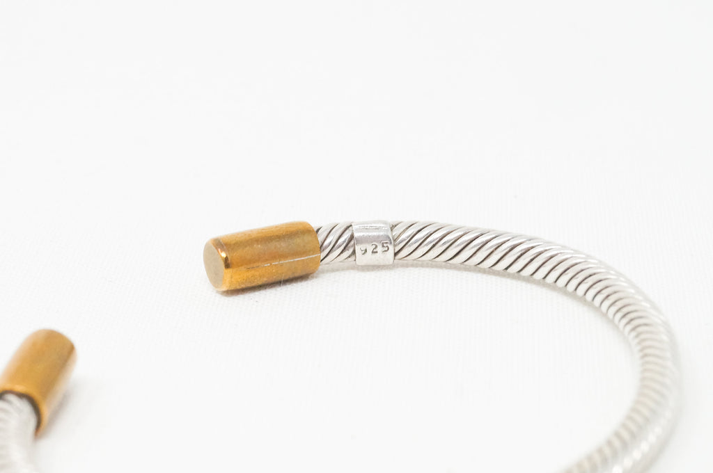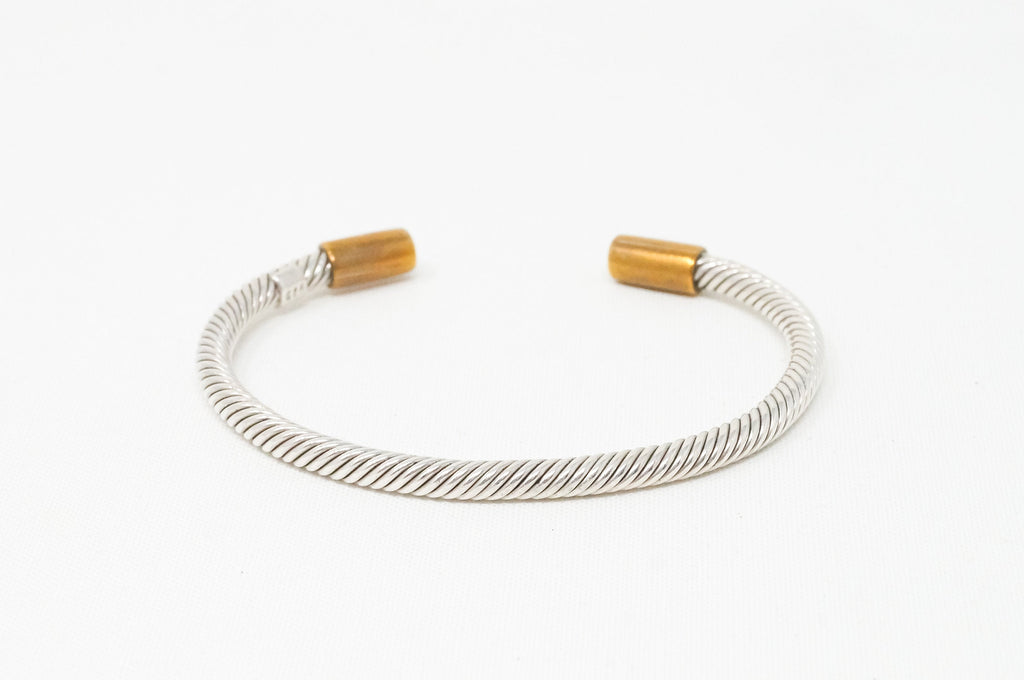 Vintage Brass Coil Cable Modernist Twist Sterling Silver Cuff Bracelet