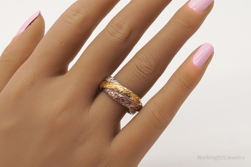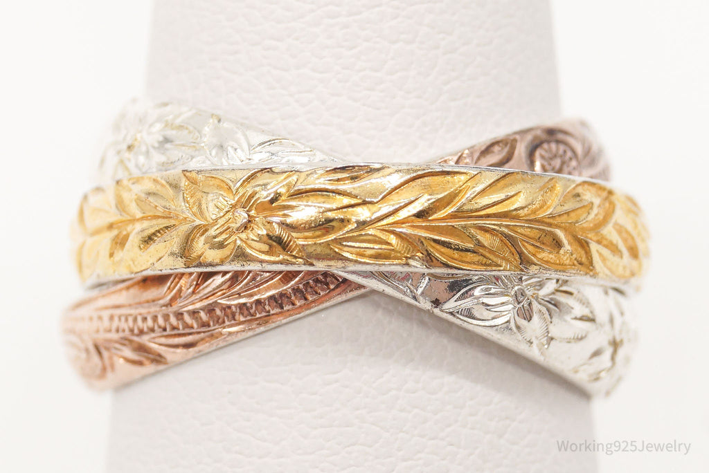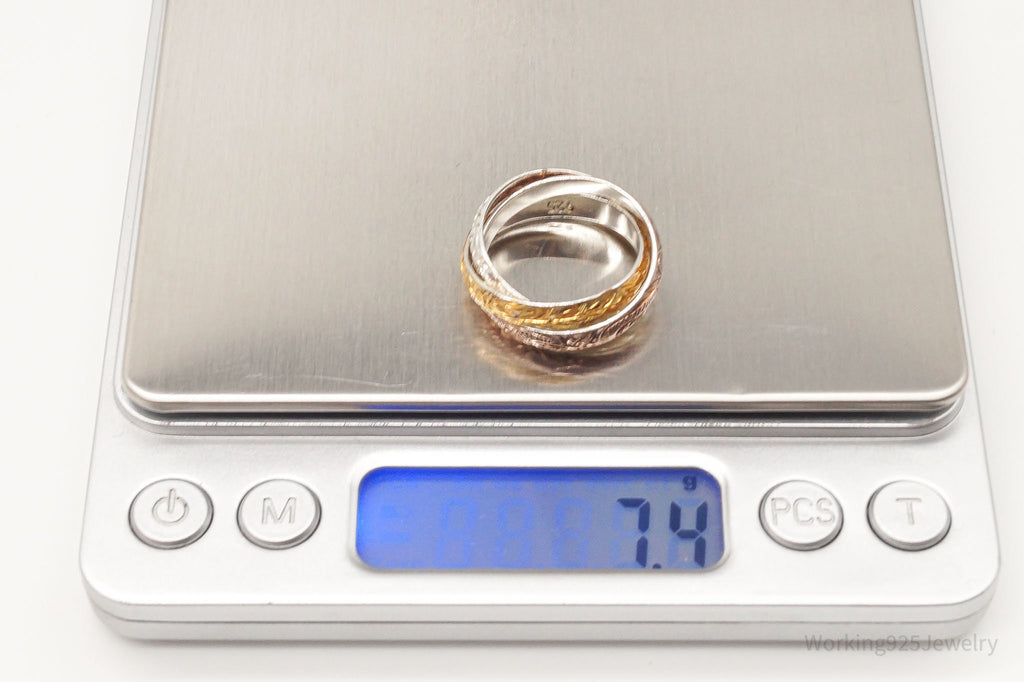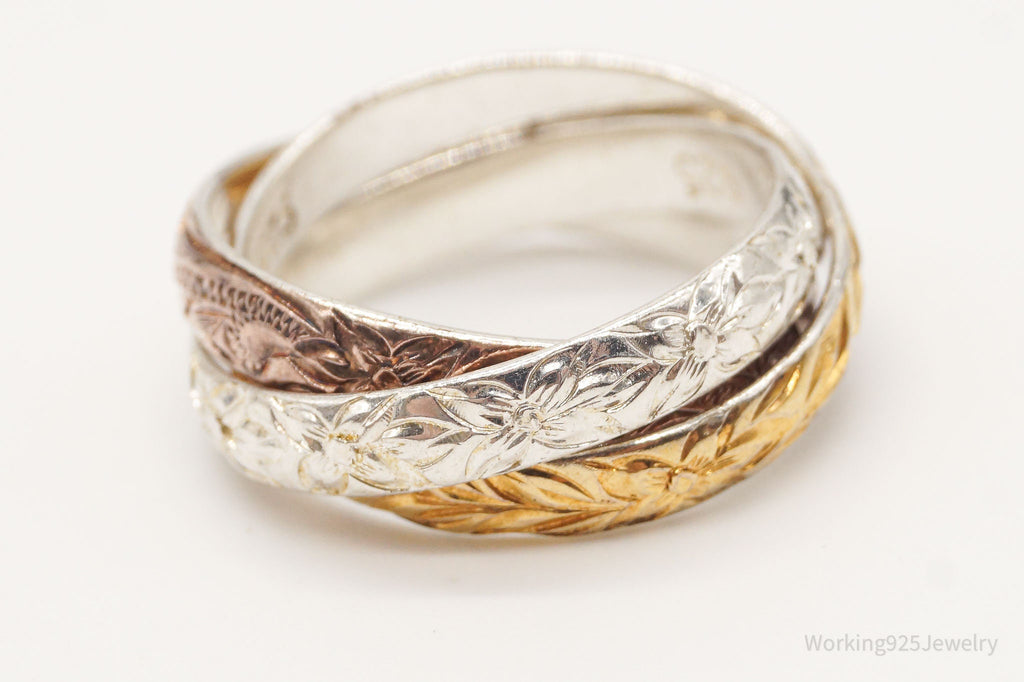 Vintage Brass & Copper Vermeil Sterling Silver Interlocking Rings - Size 8.5