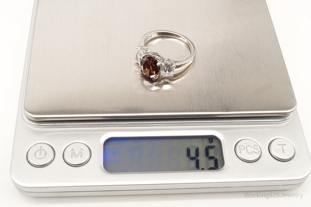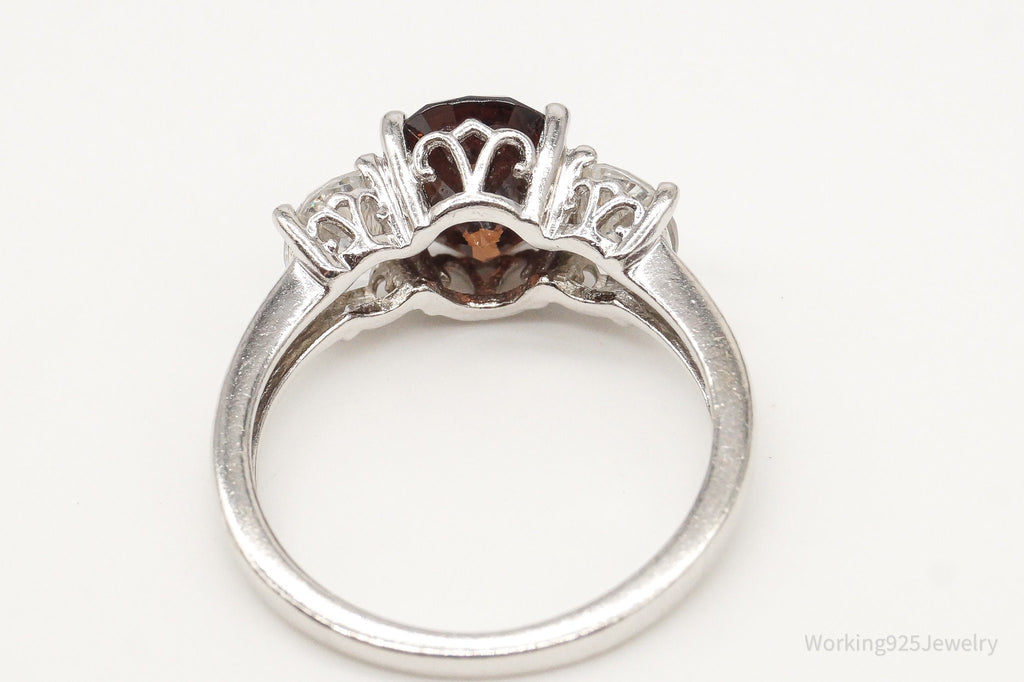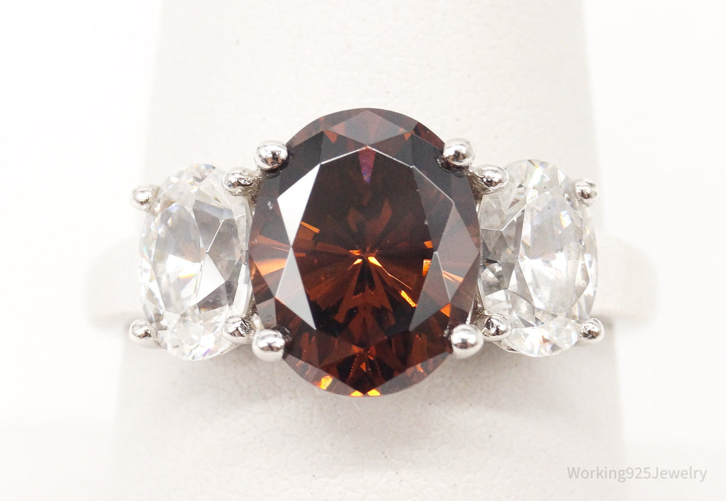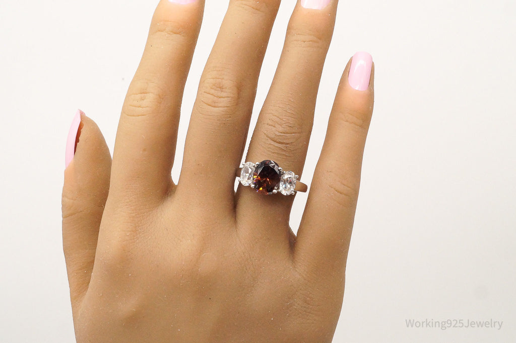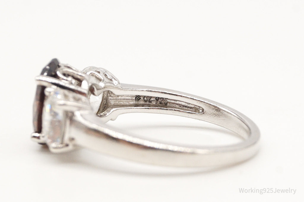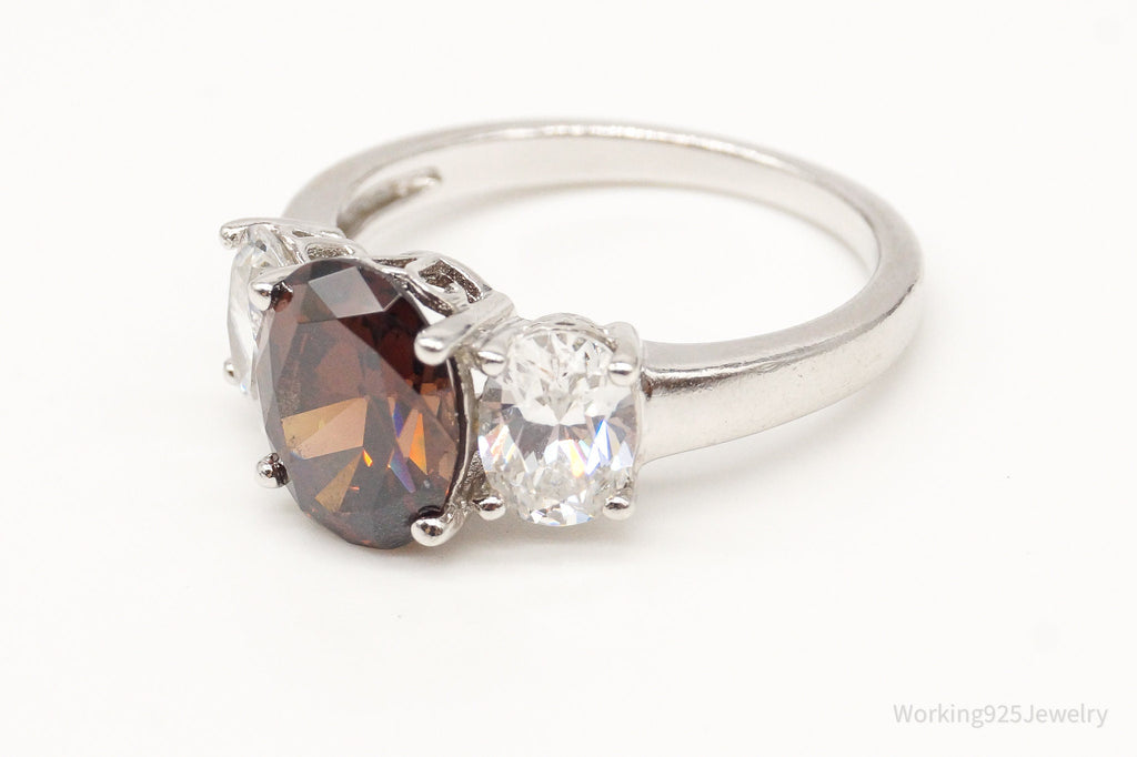Vintage Brown & White Cubic Zirconia Platinum Clad Sterling Silver Ring - Size 8