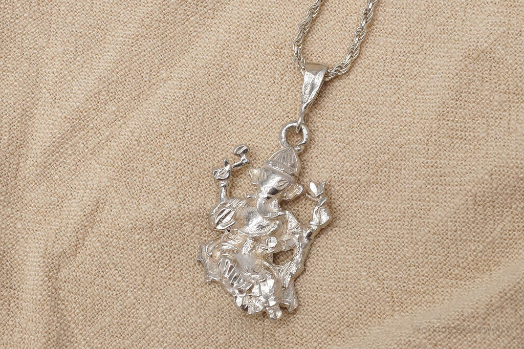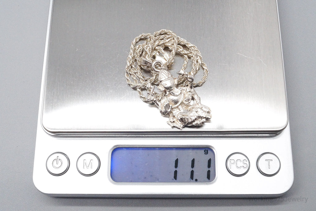 Vintage Buddha Ganesha Sterling Silver Necklace 18"