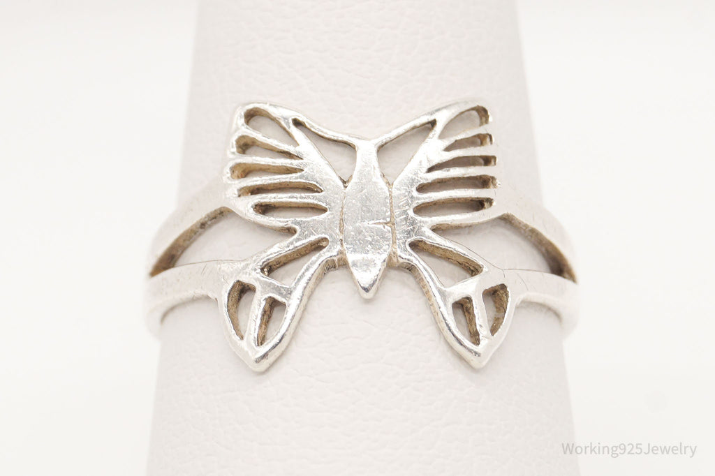 Vintage Butterfly Moth Sterling Silver Ring - Size 7.5