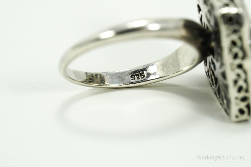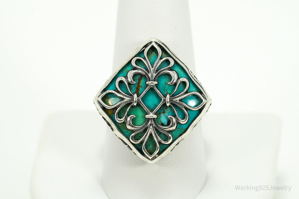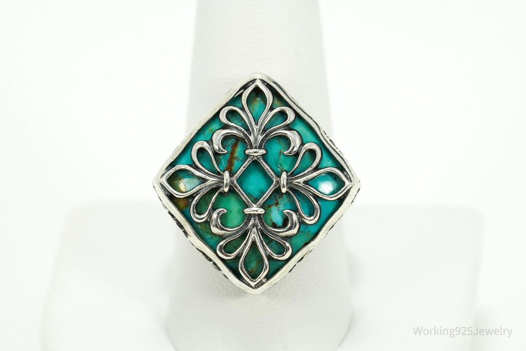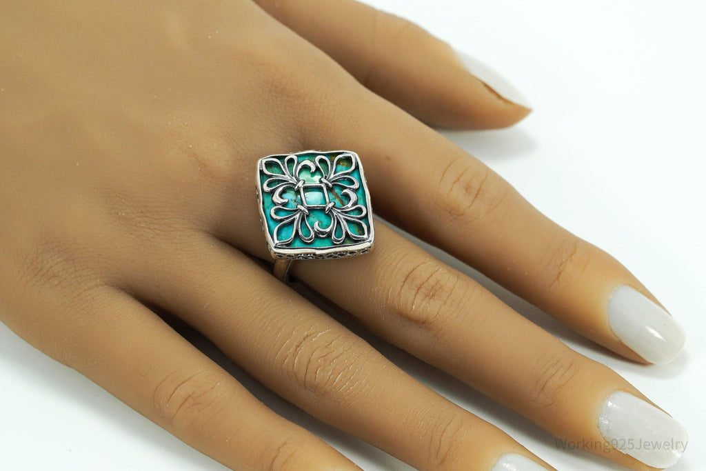 Vintage Caged Turquoise Sterling Silver Ring - Size 10