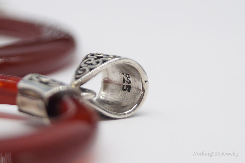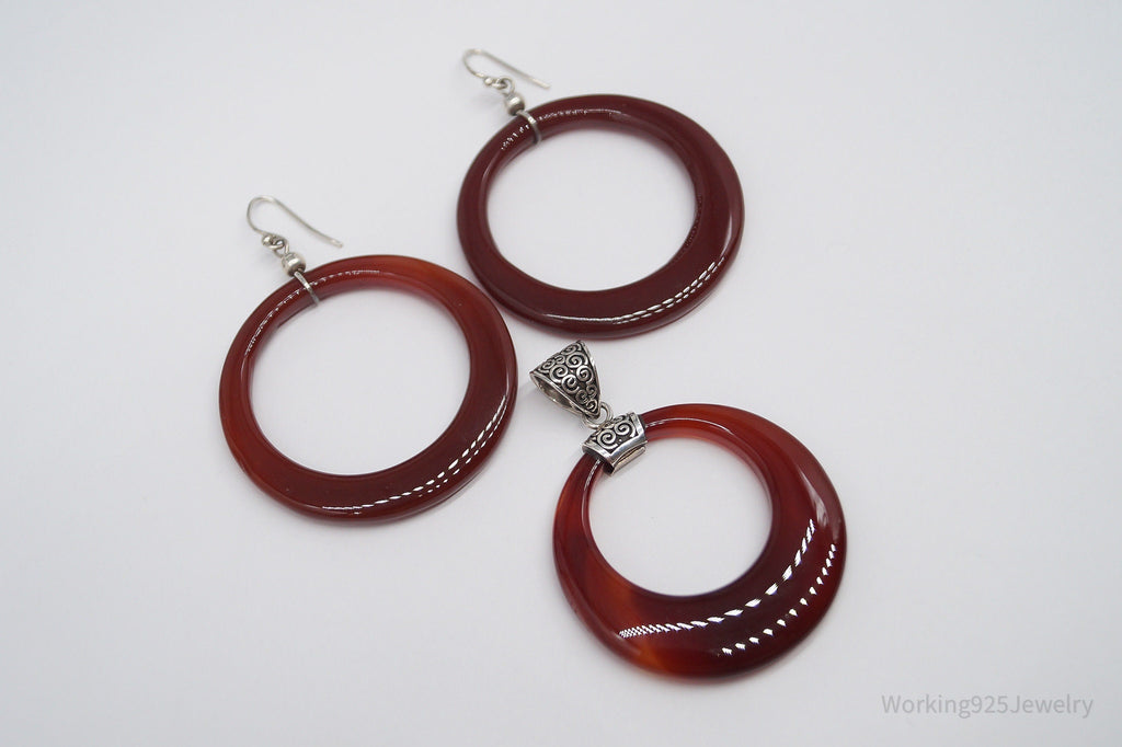 Vintage Carnelian Sterling Silver Earrings & Pendant Set