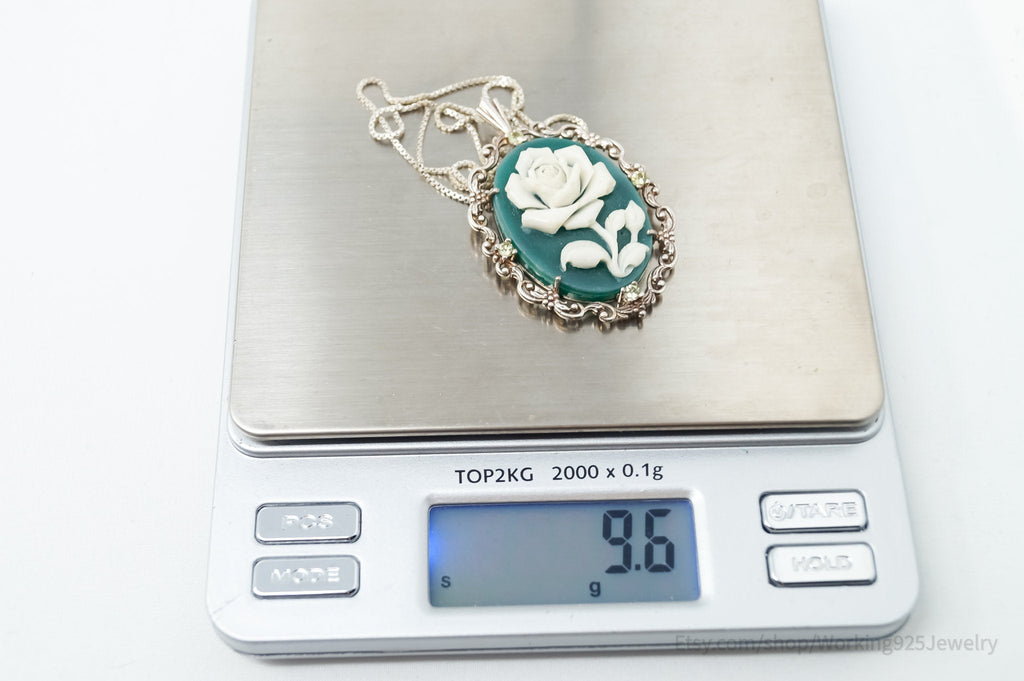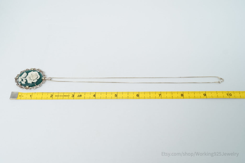 Vintage Carved Flower Dyed Fossil Sterling Silver Necklace