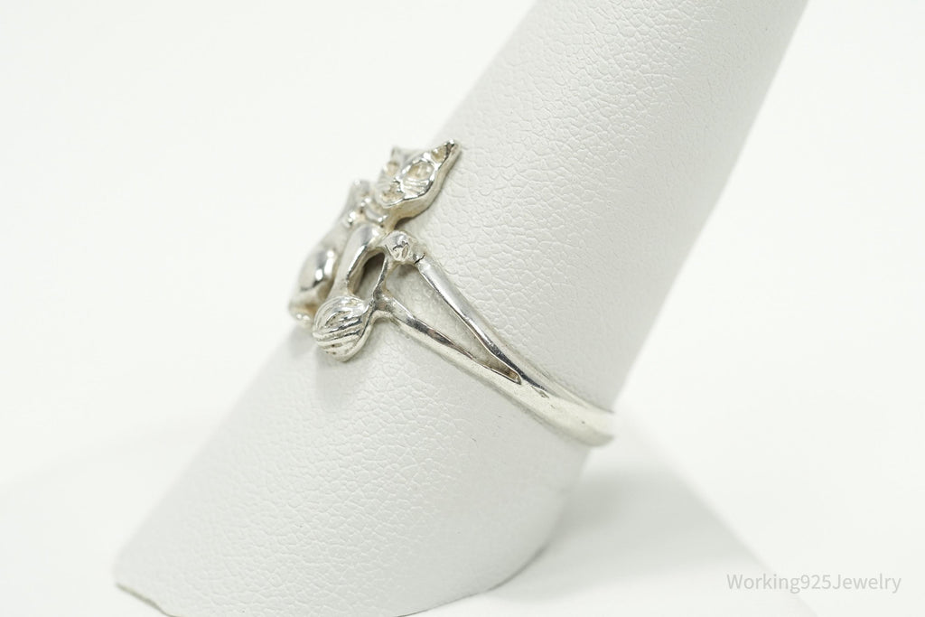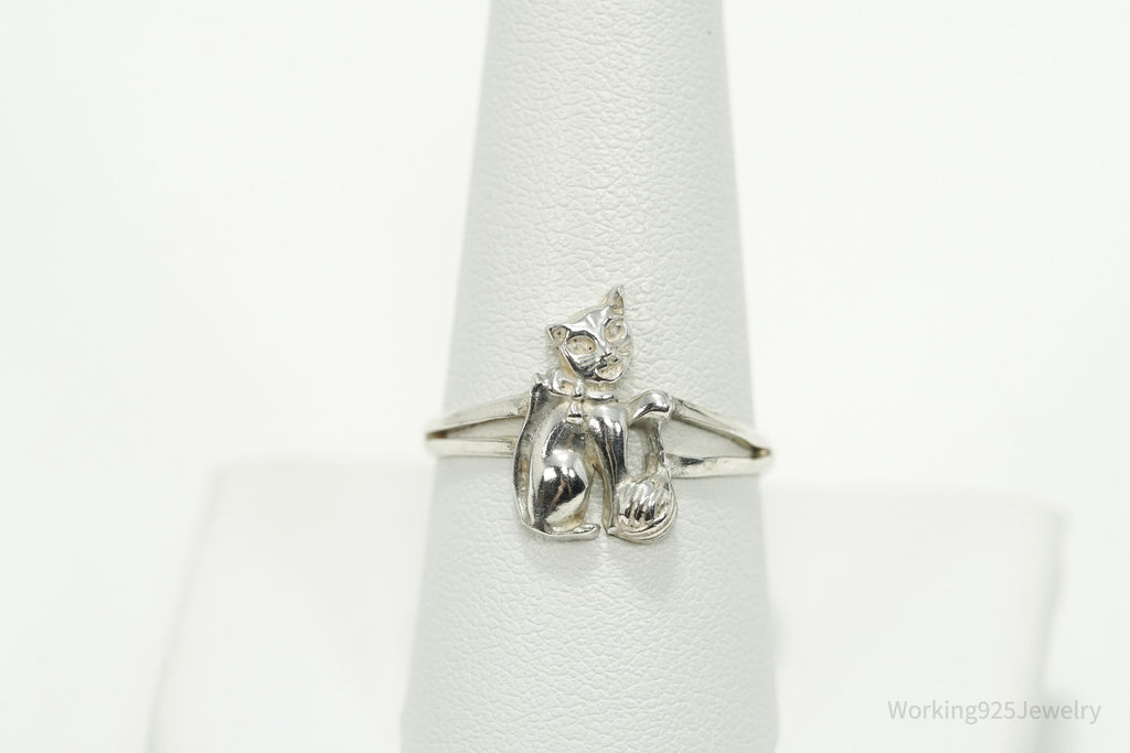 Vintage Cat & Yarn Sterling Silver Ring - Size 9.25
