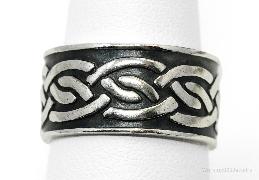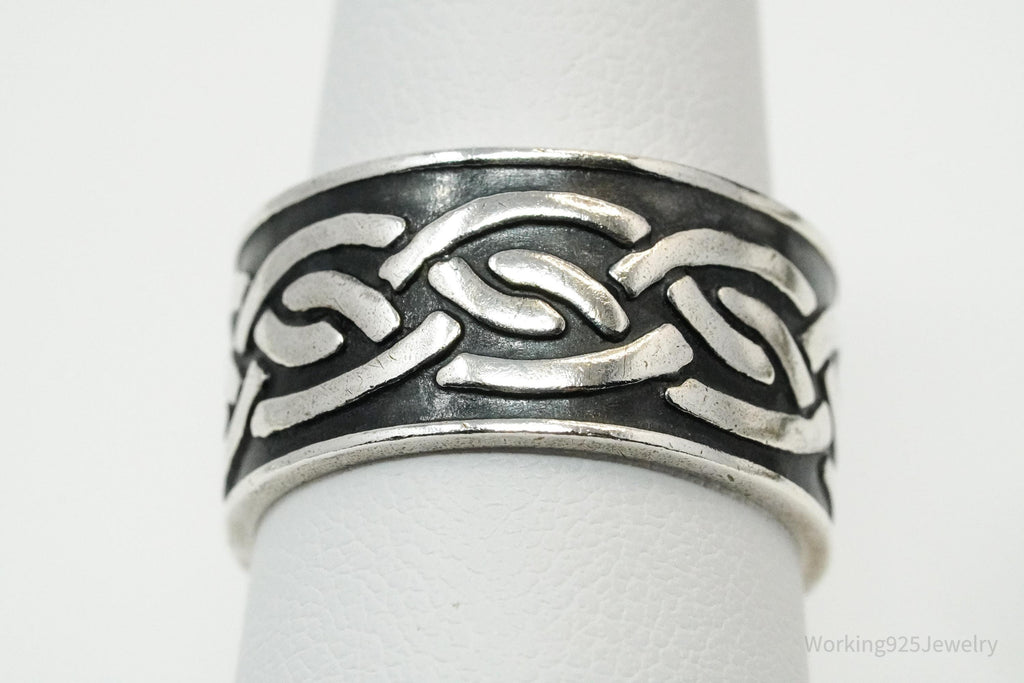Vintage Celtic Knot Design Sterling Silver Band Ring - Size 7.5