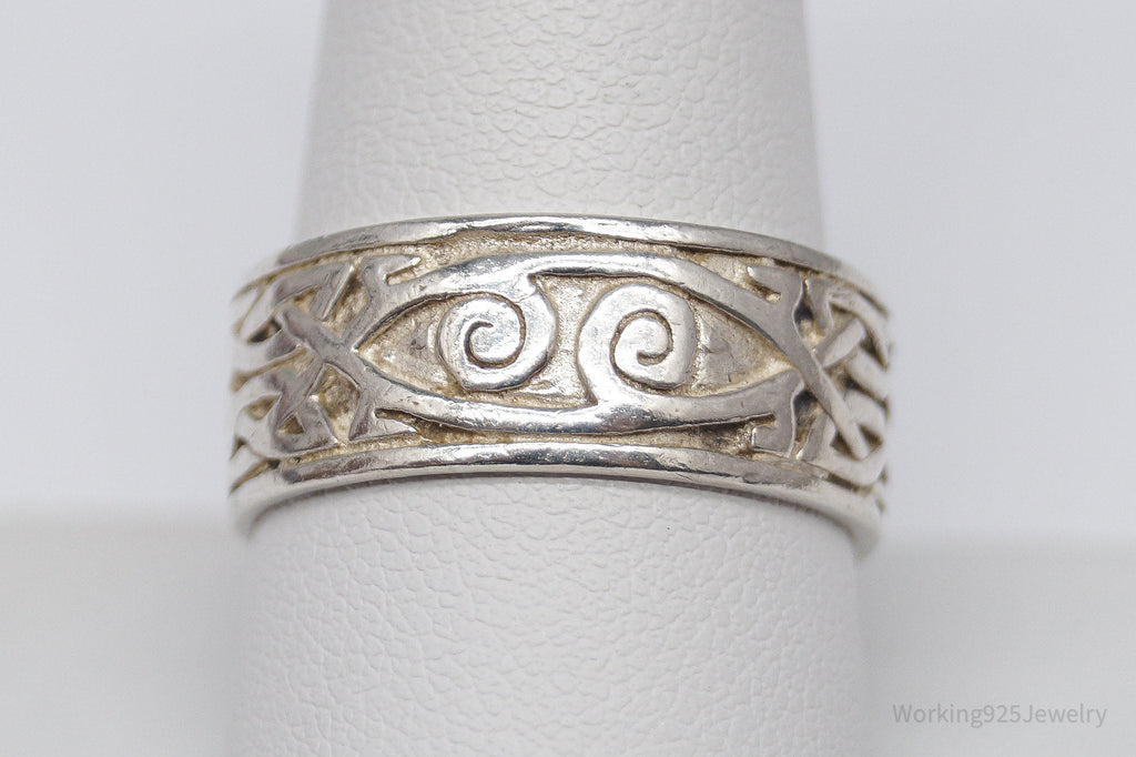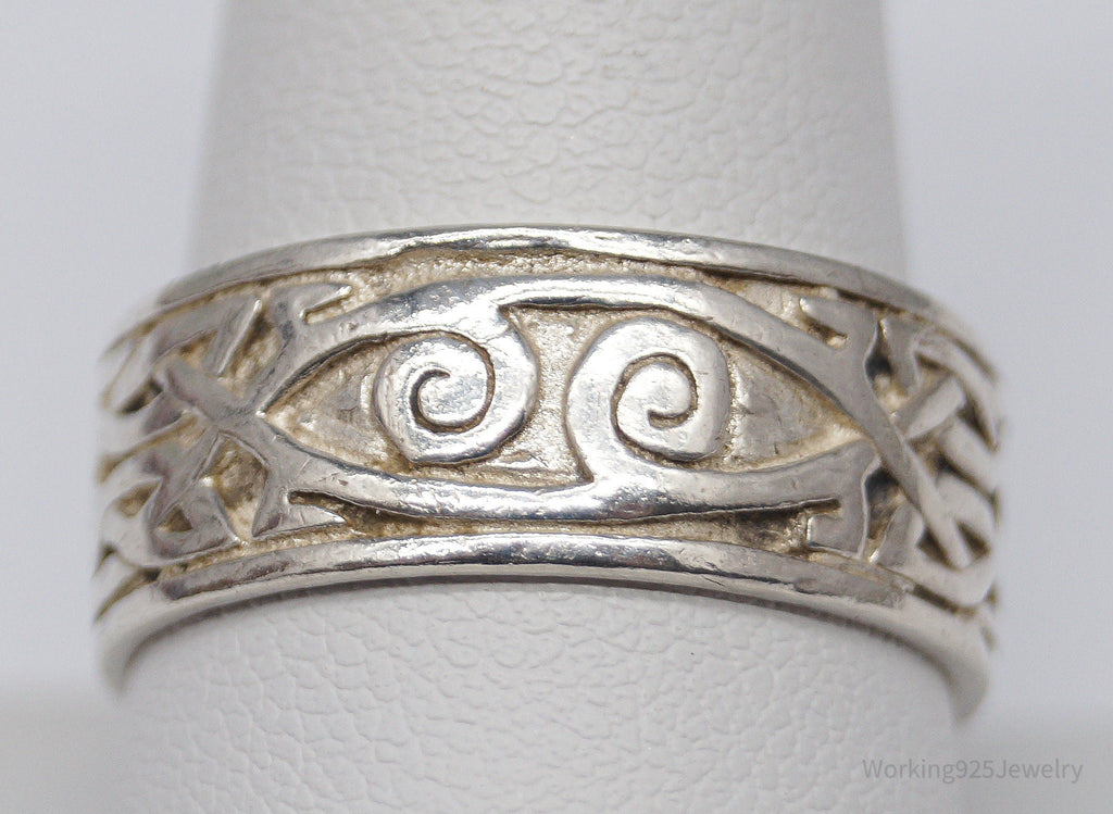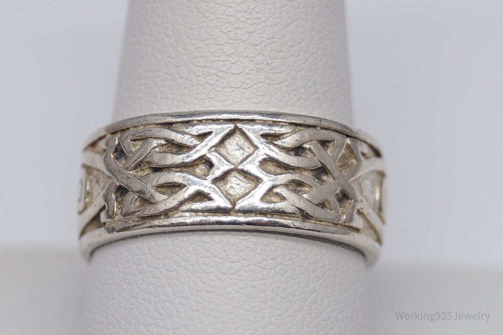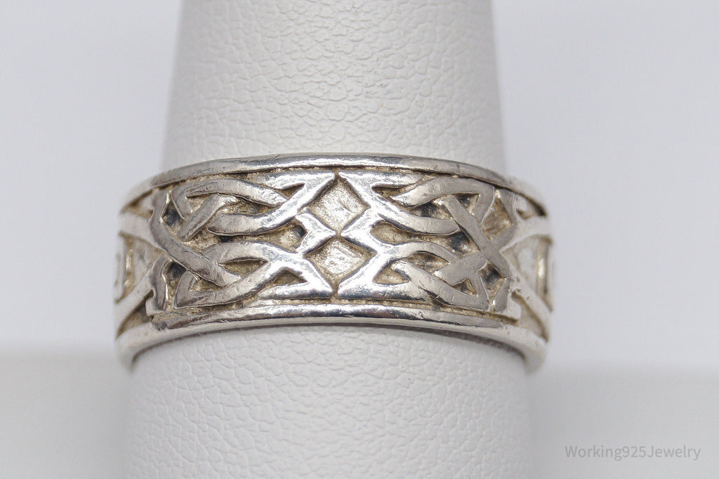 Vintage Celtic Knots Sterling Silver Band Ring - Size 10.25