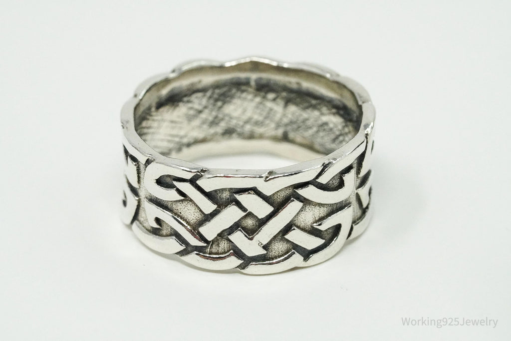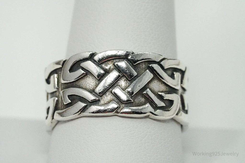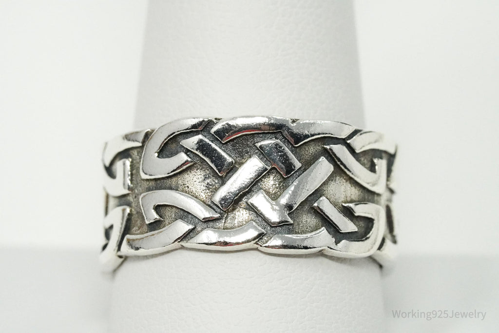 Vintage Celtic Knots Sterling Silver Band Ring - Size 11.5