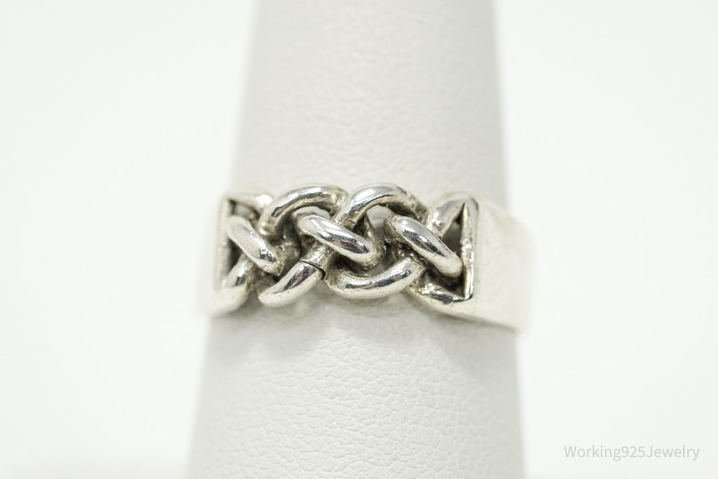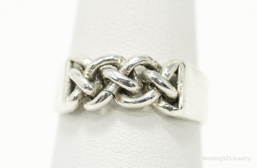 Vintage Chain Modernist Style Sterling Silver Ring - Size 8