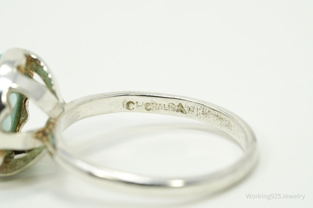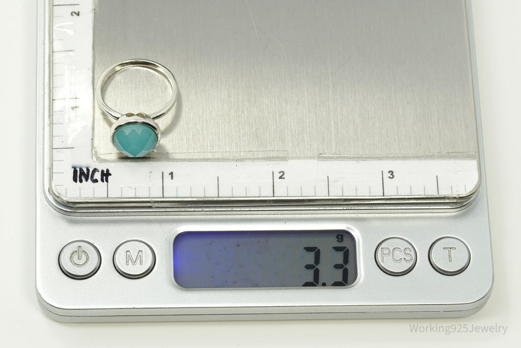 Vintage Chalisa Aqua Blue Chalcedony Sterling Silver Ring - Size 6