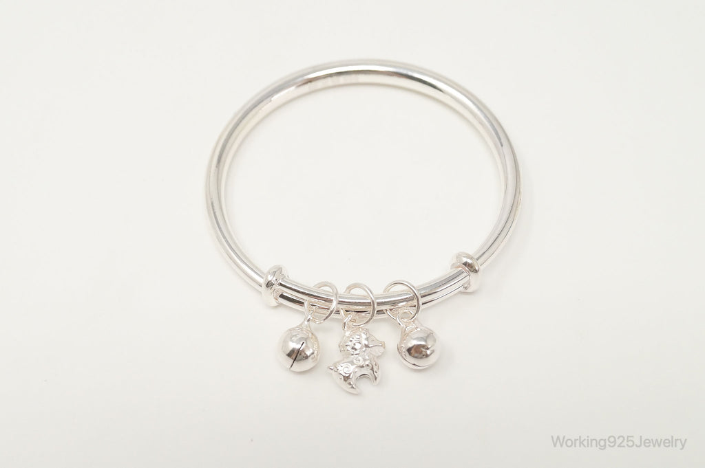 Vintage Charm Jingle Bell 999 Fine Silver Bangle Baby Kids Bracelet