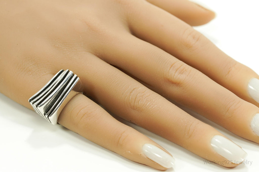 Vintage Chunky Modernist Style Sterling Silver Ring - Size 5.75