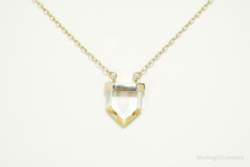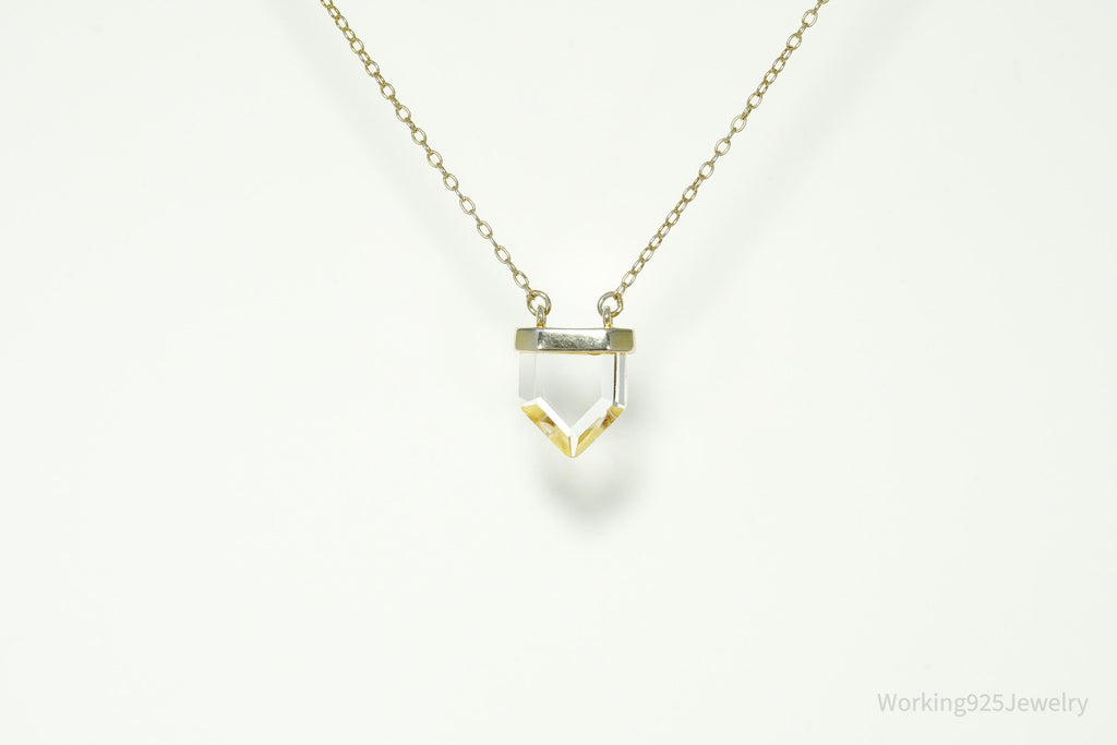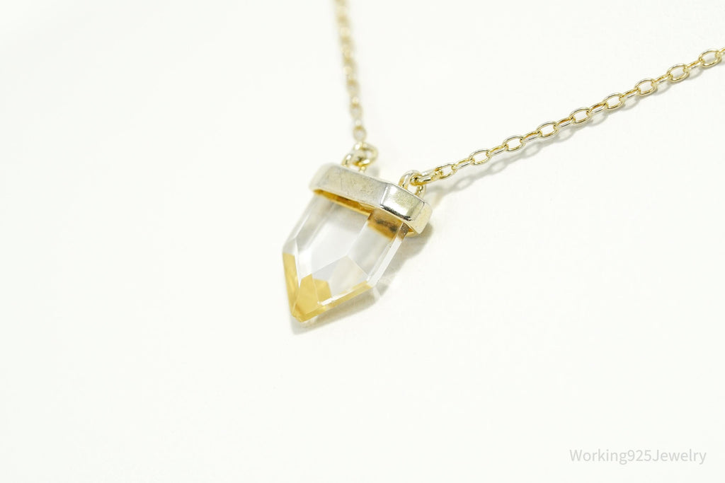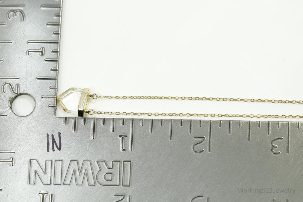 Vintage Clear Crystal Gold Vermeil Sterling Silver Necklace 19"