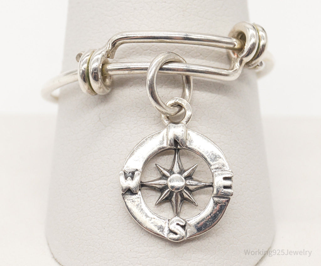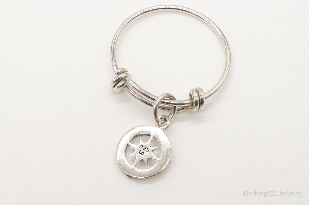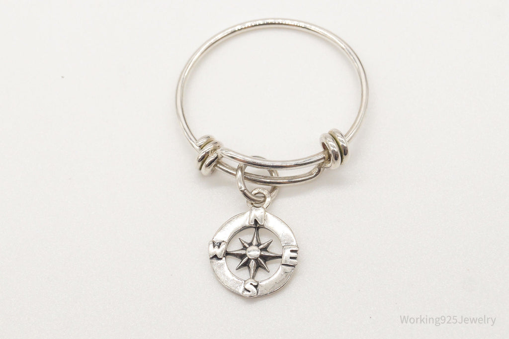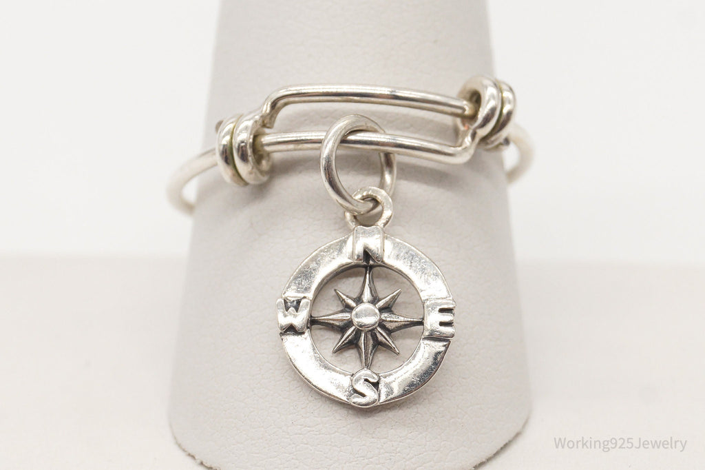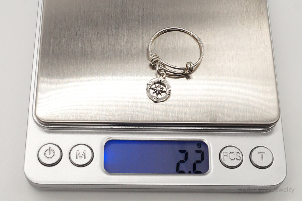 Vintage Compass Charm Sterling Silver ring - 10 Adjustable