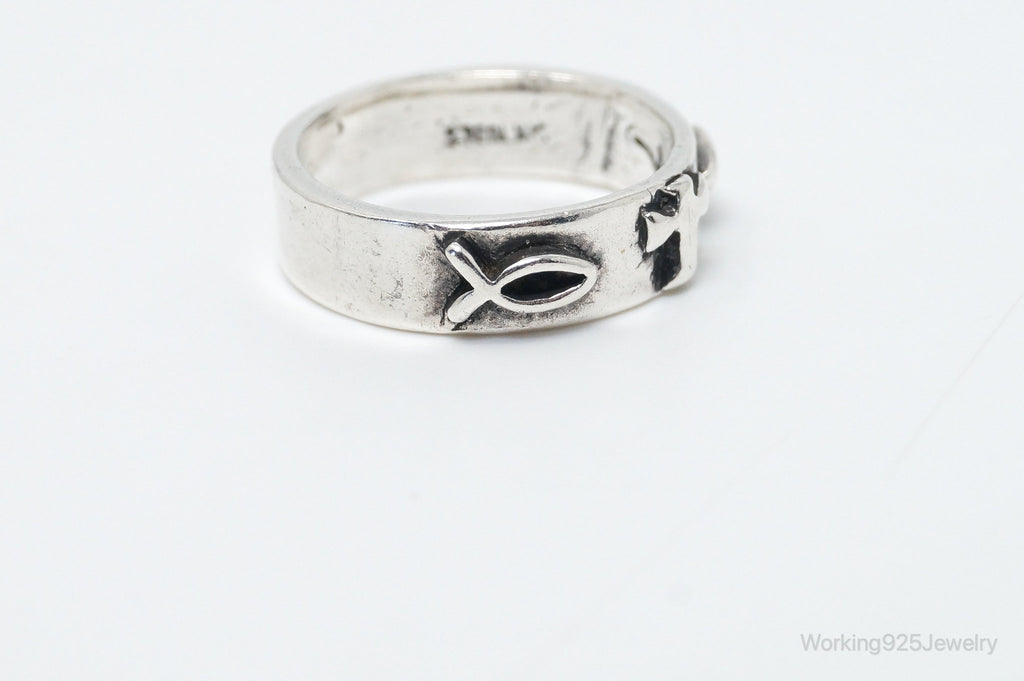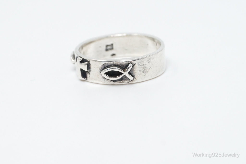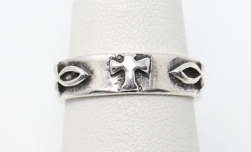 Vintage Cross Christian Sterling Silver Band Ring - Size 6.5