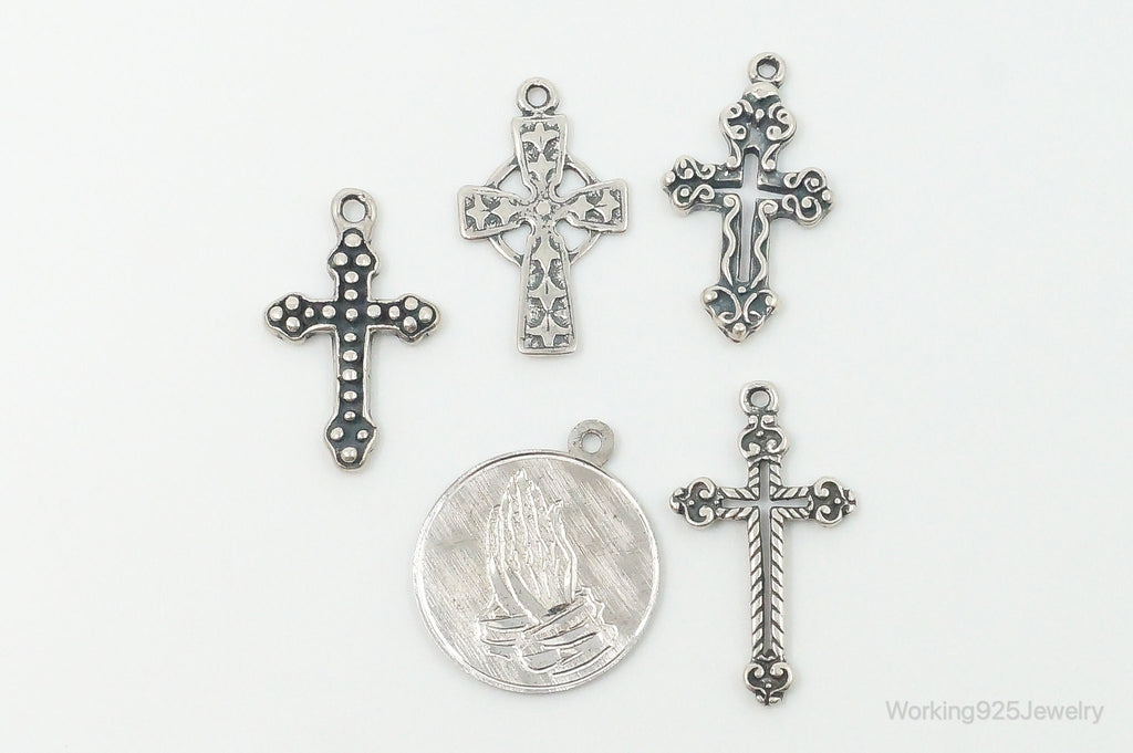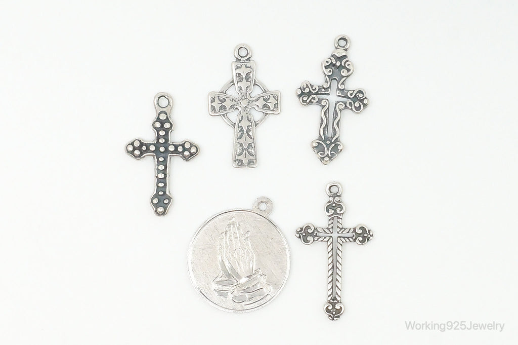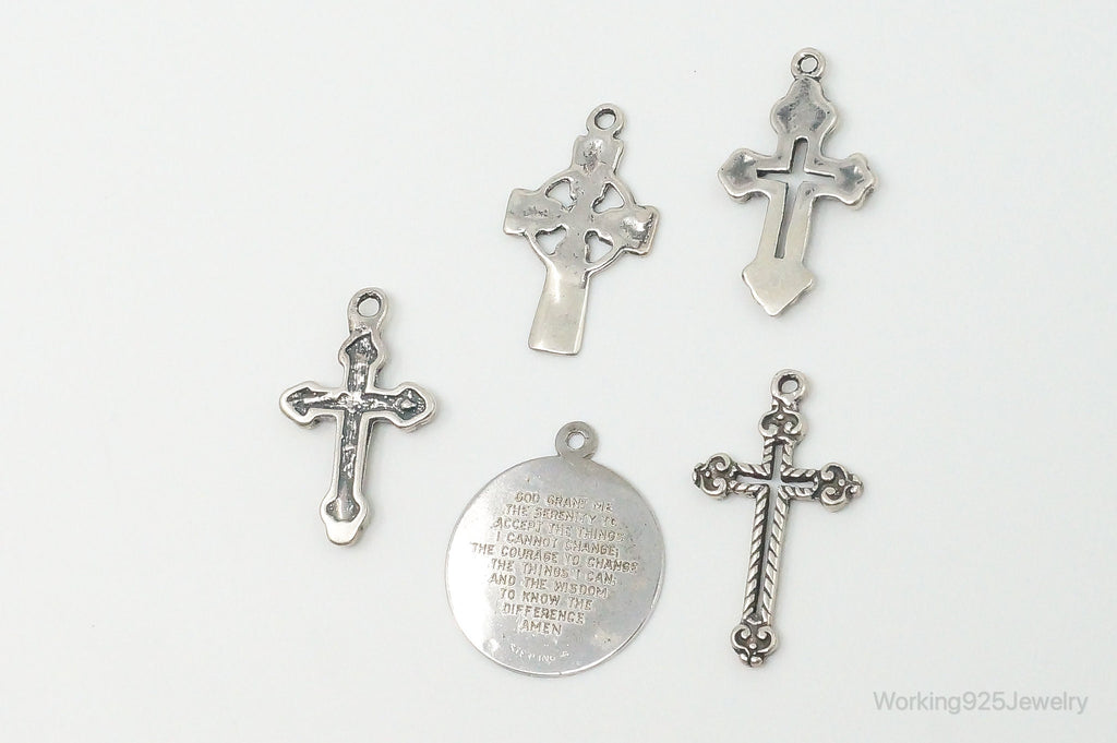 Vintage Crosses & Prayer Sterling Silver Charms Lot
