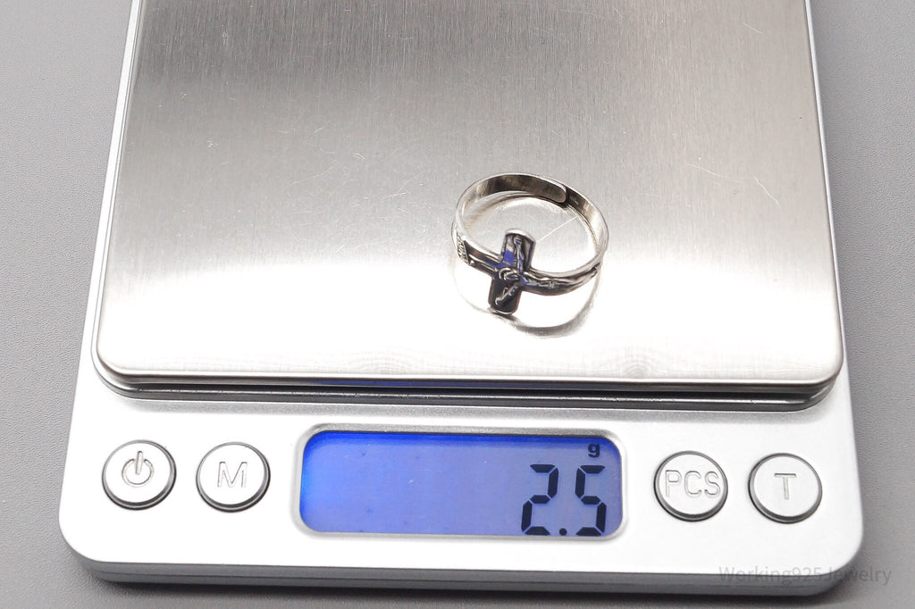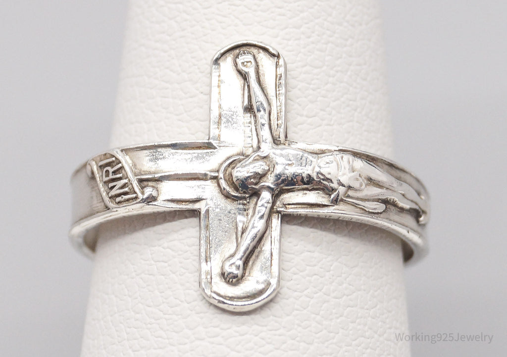 Vintage Crucifix Cross Sterling Silver Band Ring - Size 8.75 Adjustable