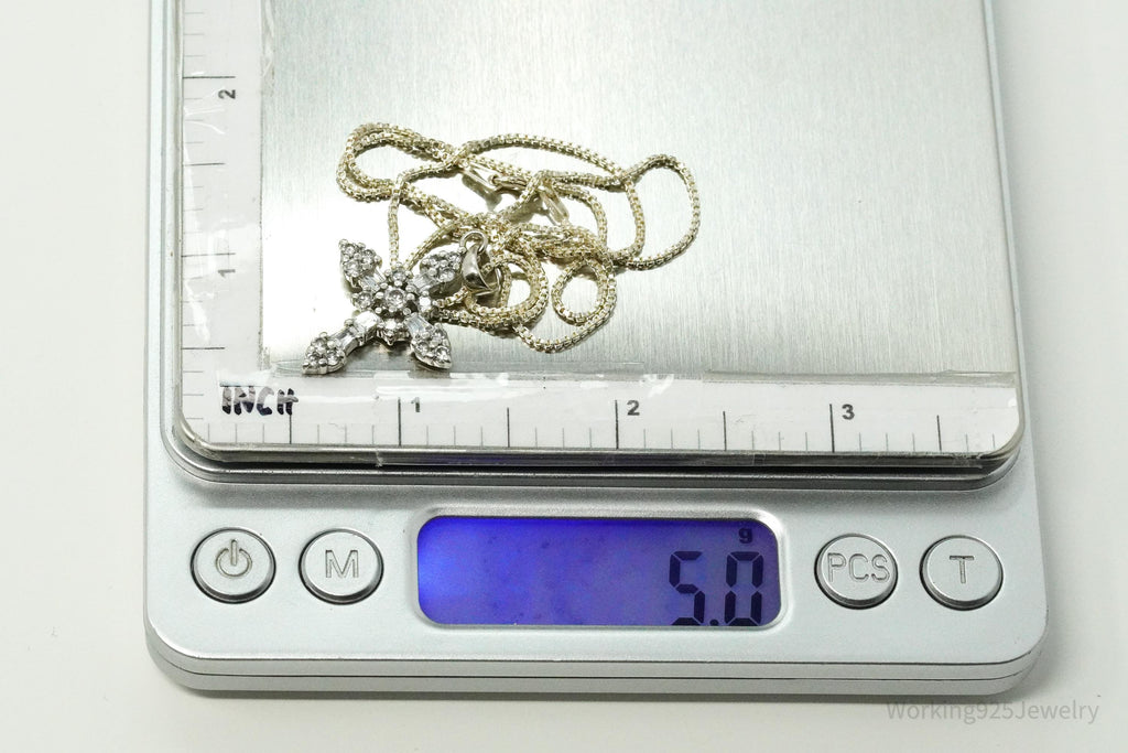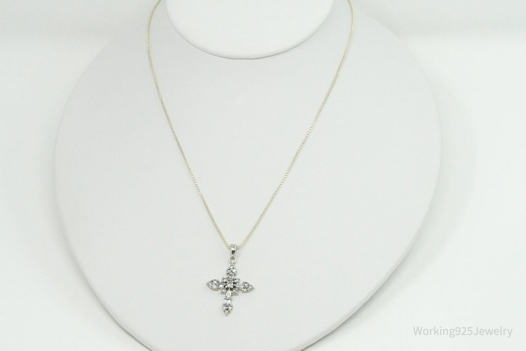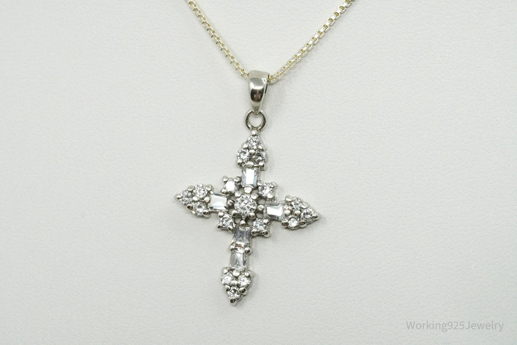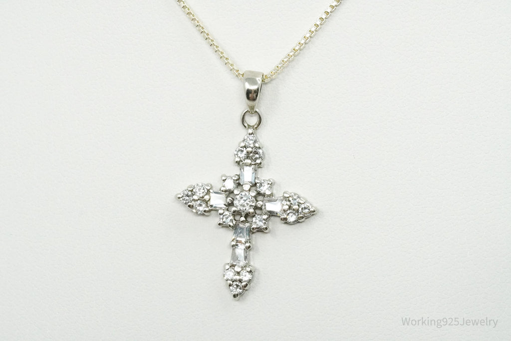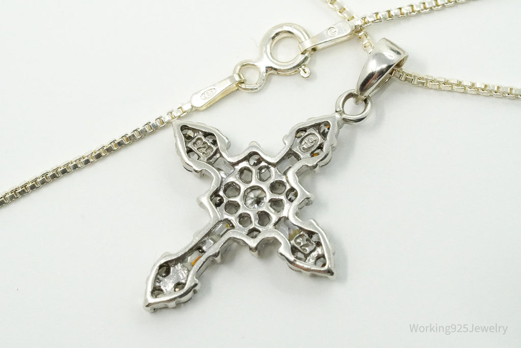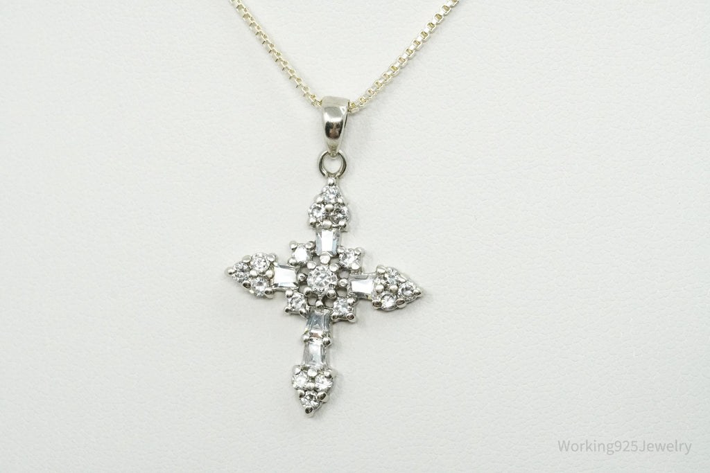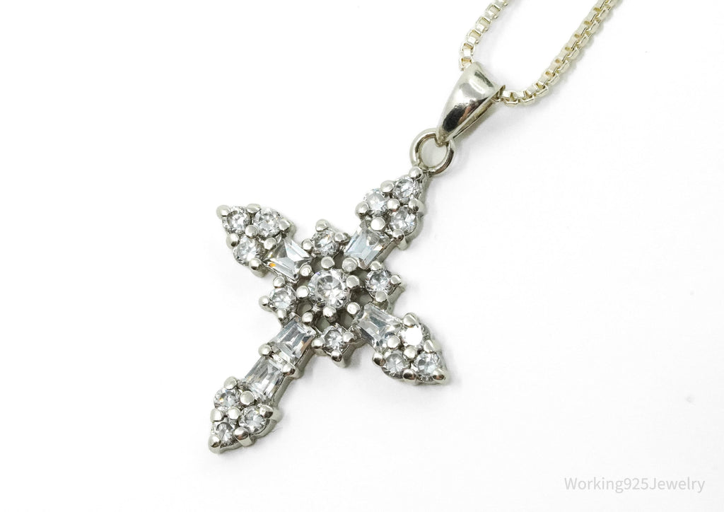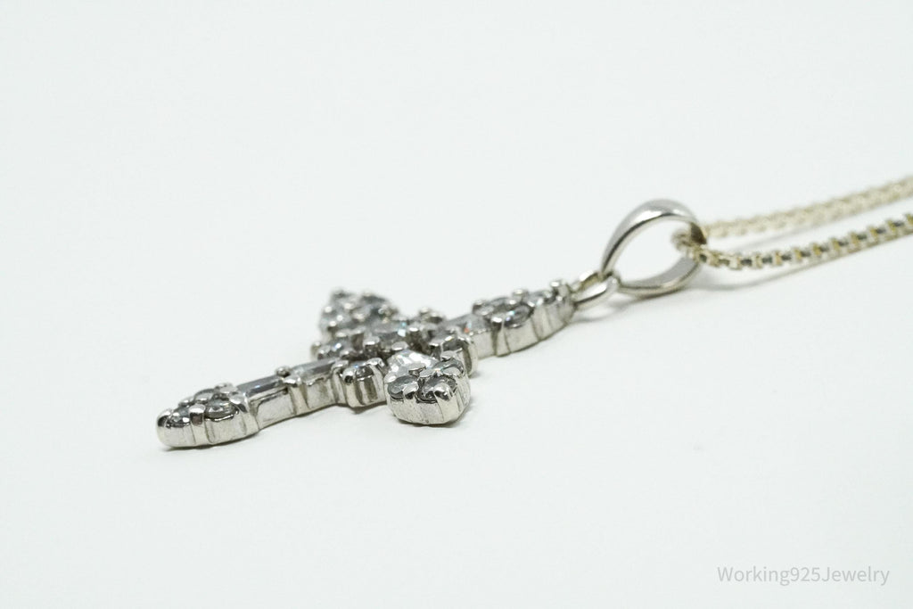 Vintage Cubic Zirconia Cross Sterling Silver Necklace 18"