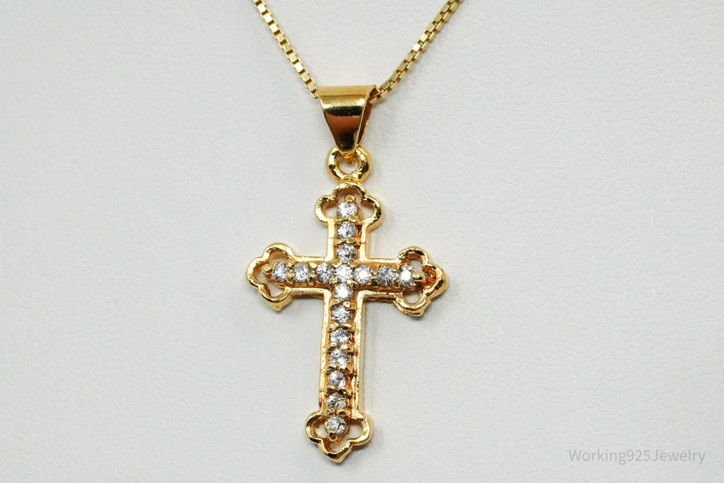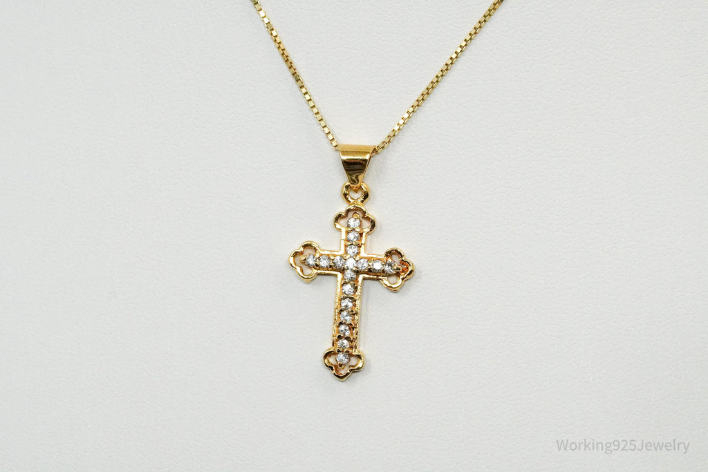 Vintage Cubic Zirconia Gold Over Sterling Silver Cross Necklace 22"