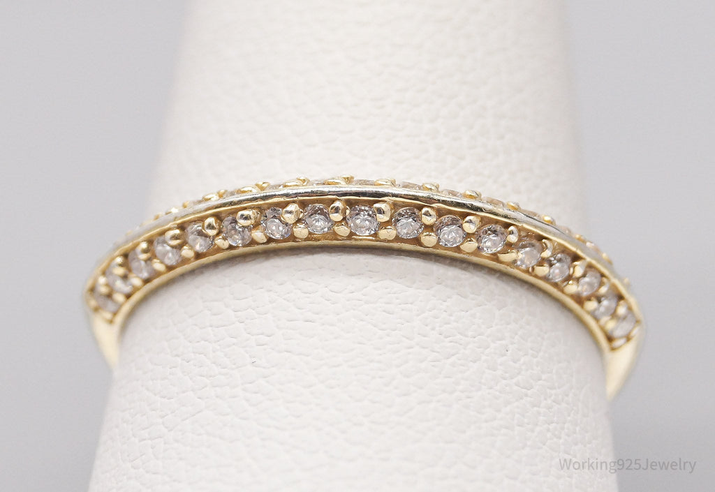 Vintage Cubic Zirconia Gold Vermeil Sterling Silver Band Ring - Size 10