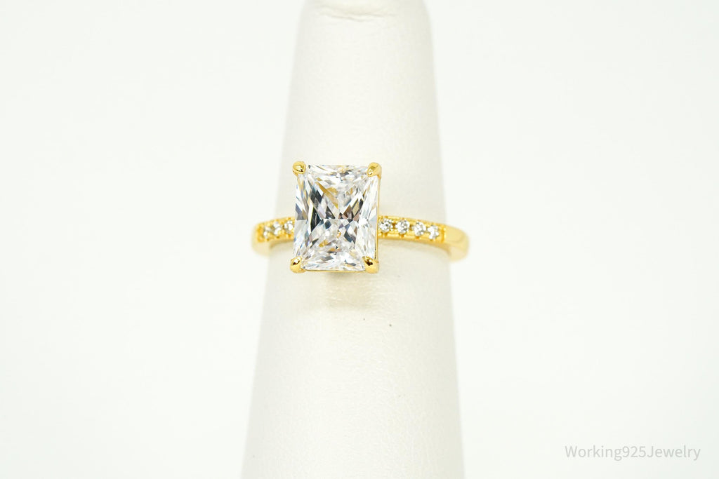 Vintage Cubic Zirconia Gold Vermeil Sterling Silver Ring - Size 5