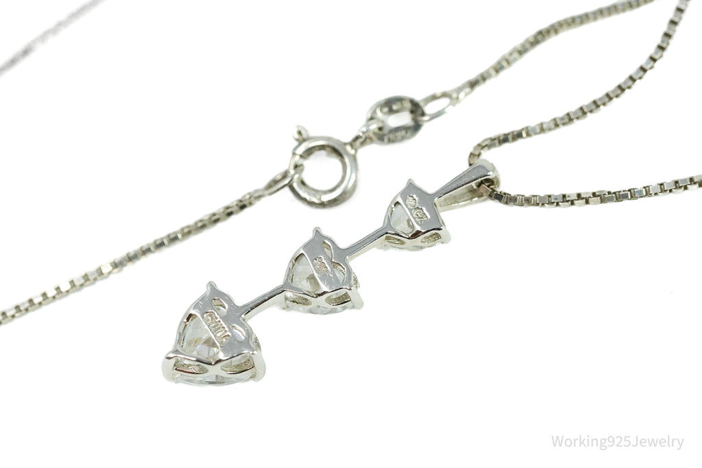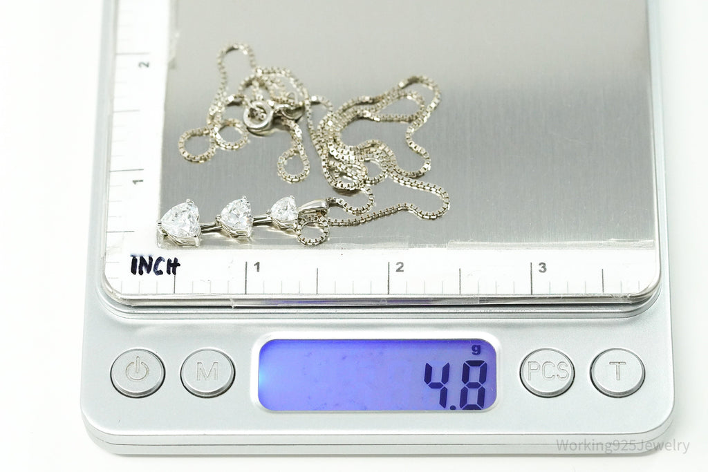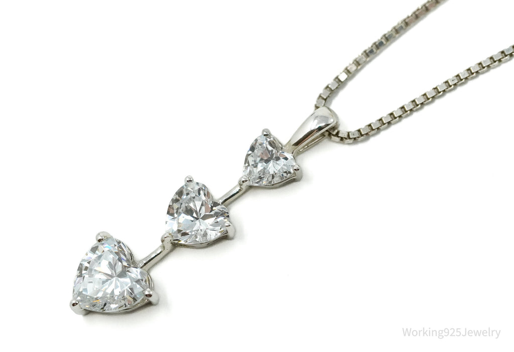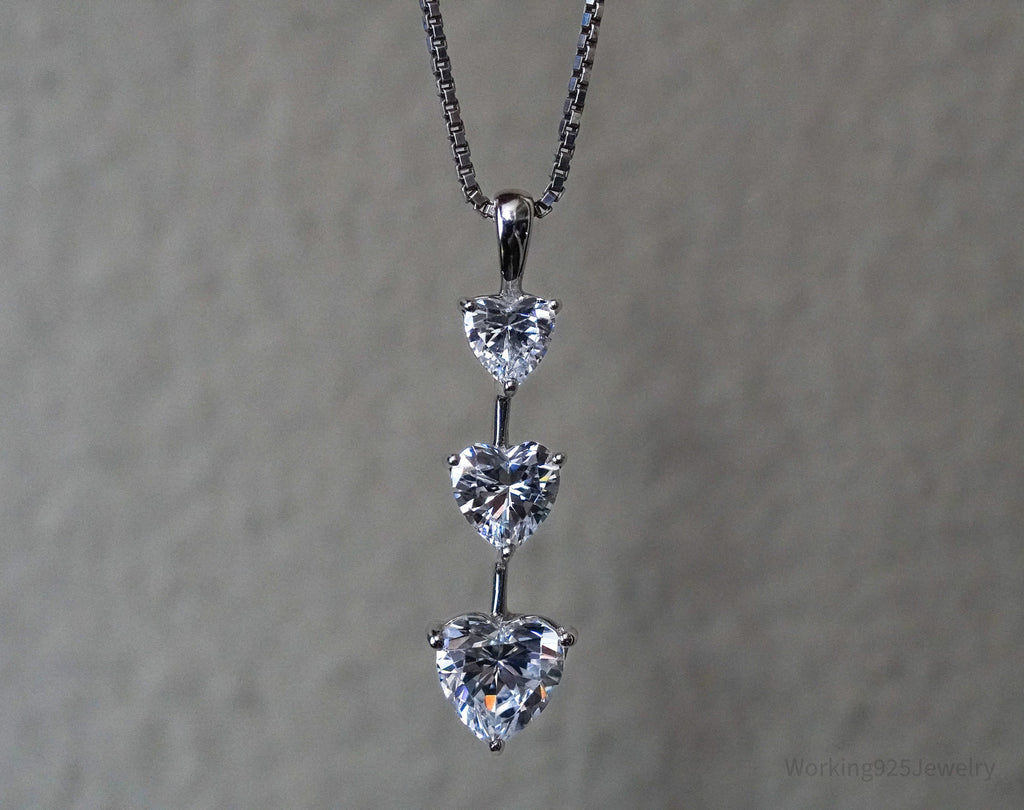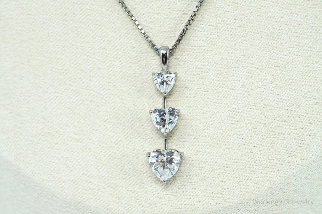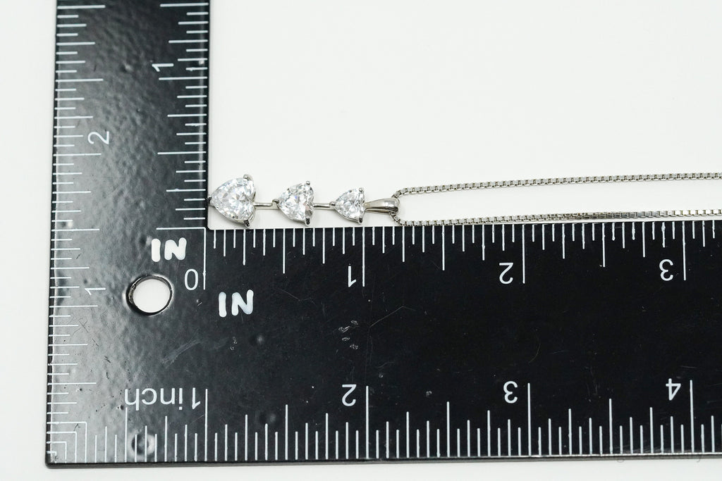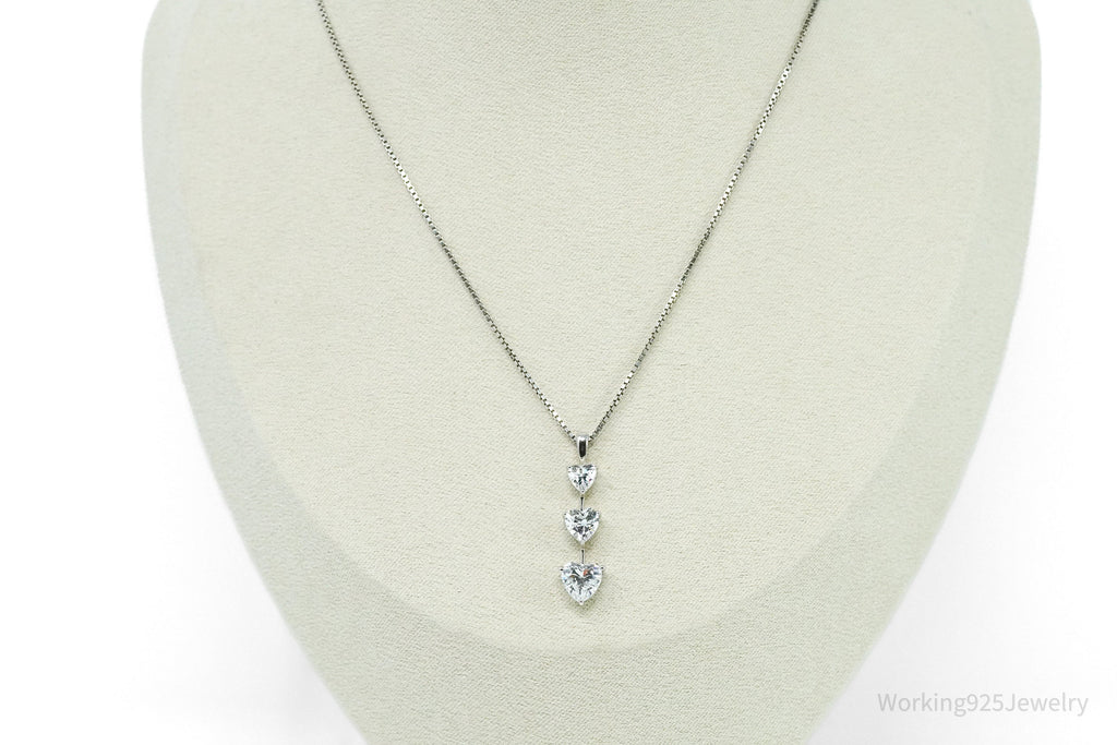 Vintage Cubic Zirconia Hearts Sterling Silver Necklace 20"