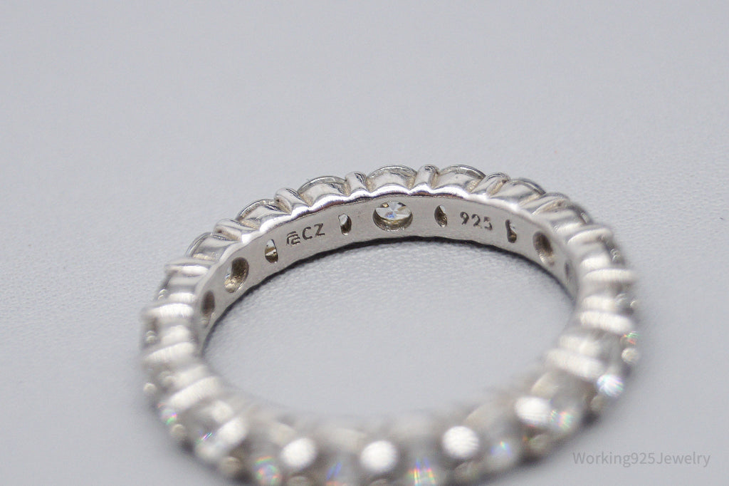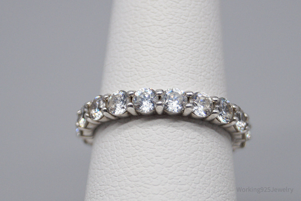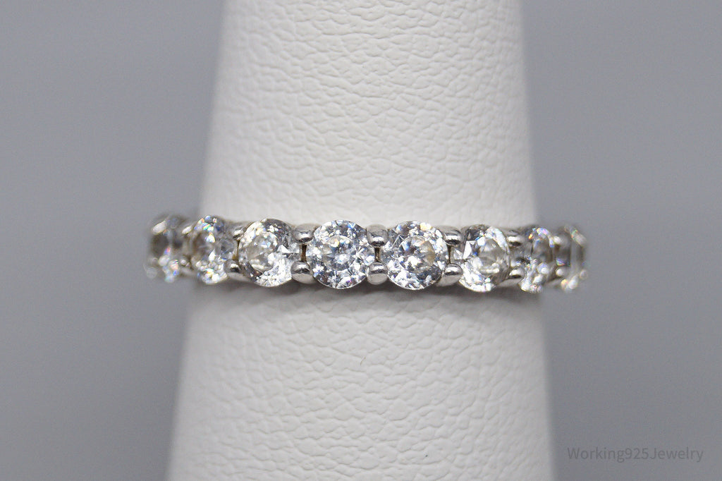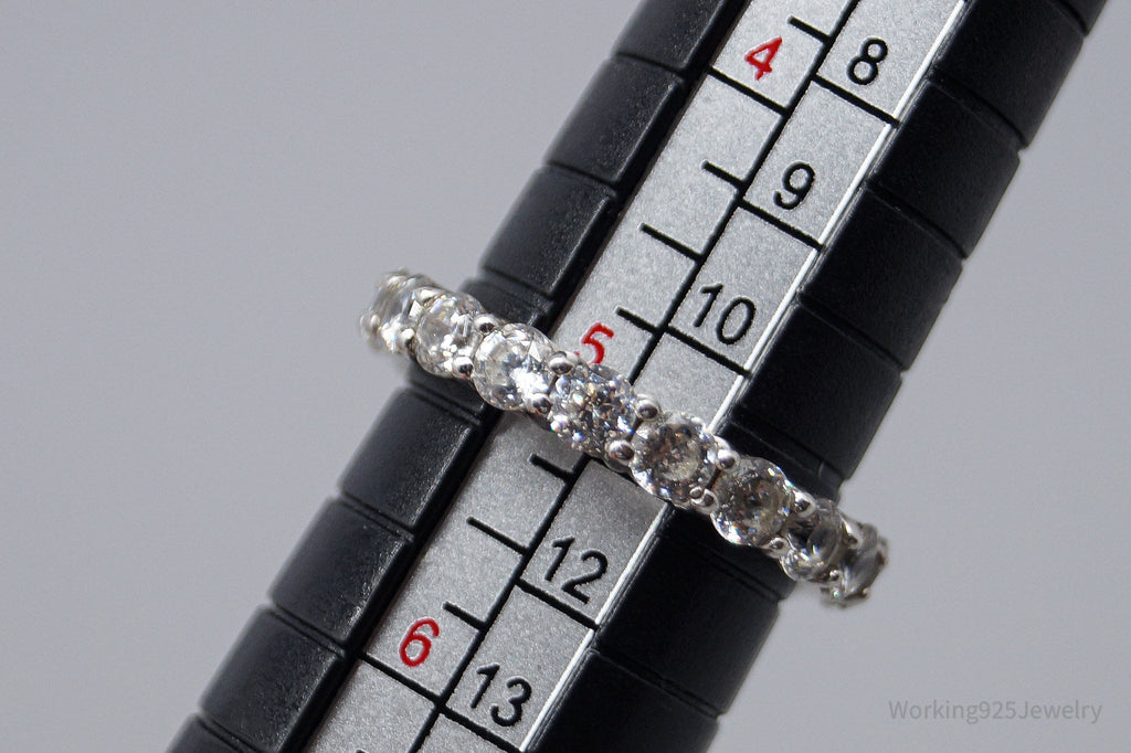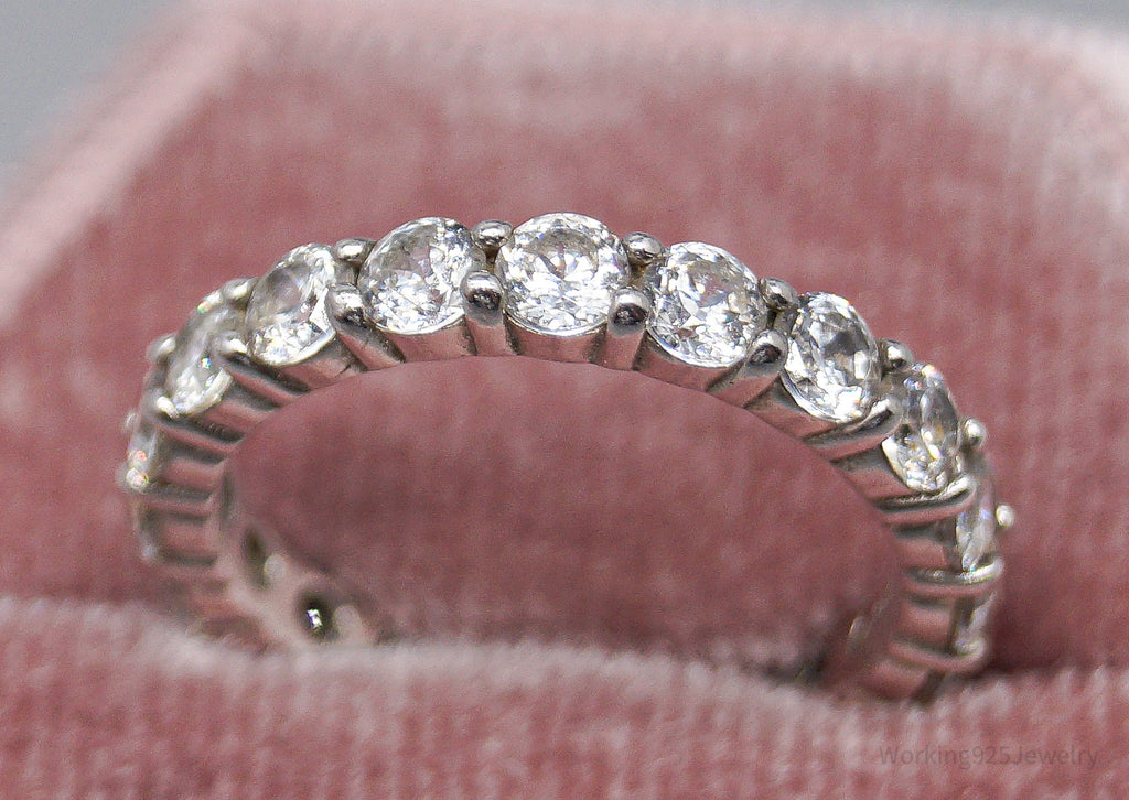 Vintage Cubic Zirconia Platinum Clad Sterling Silver Ring - Size 5
