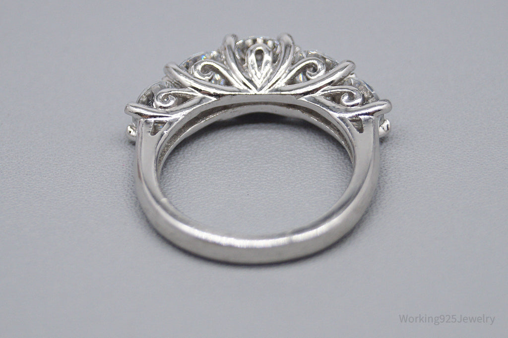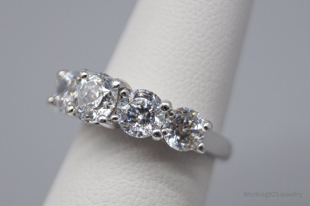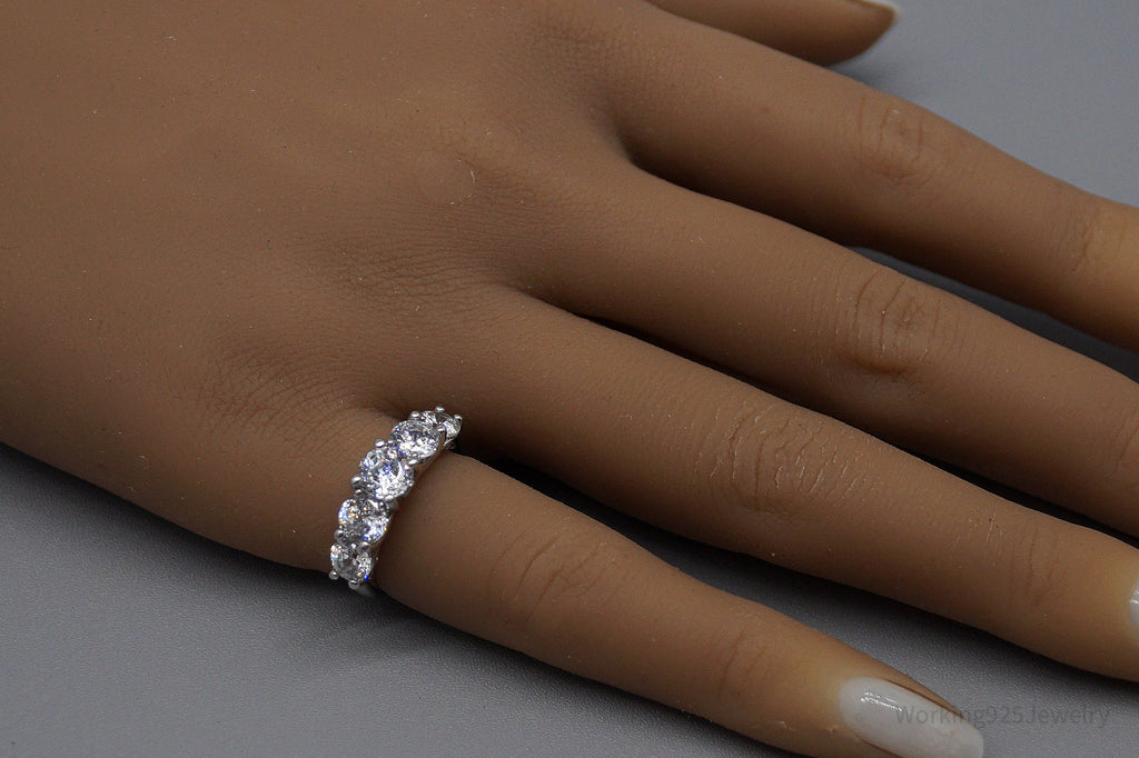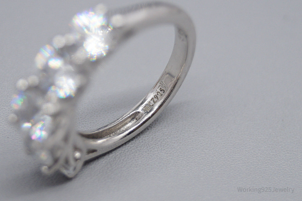 Vintage Cubic Zirconia Platinum Clad Sterling Silver Ring - Size 4.25