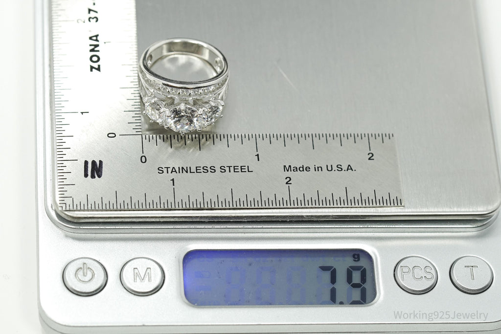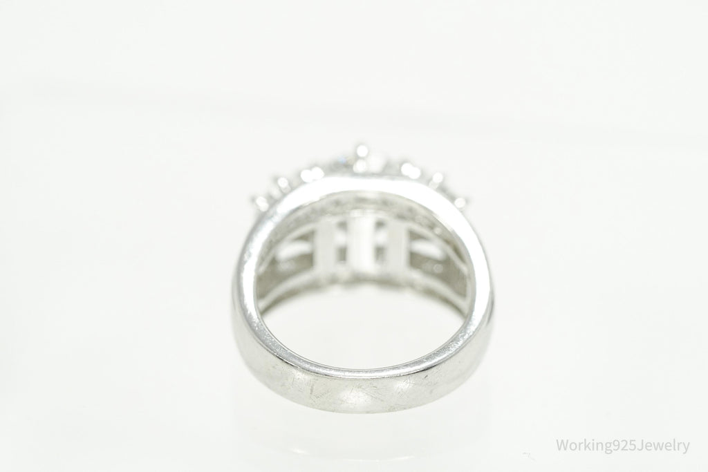 Vintage Cubic Zirconia Platinum Clad Sterling Silver Ring - Size 6.25