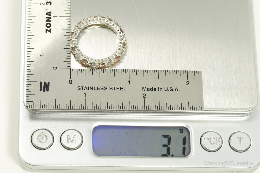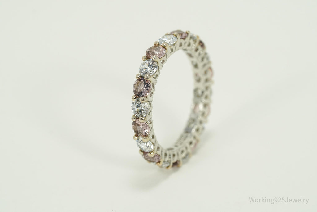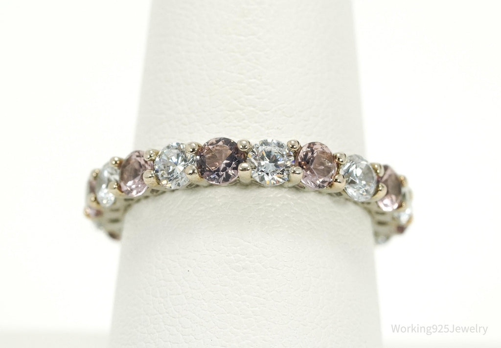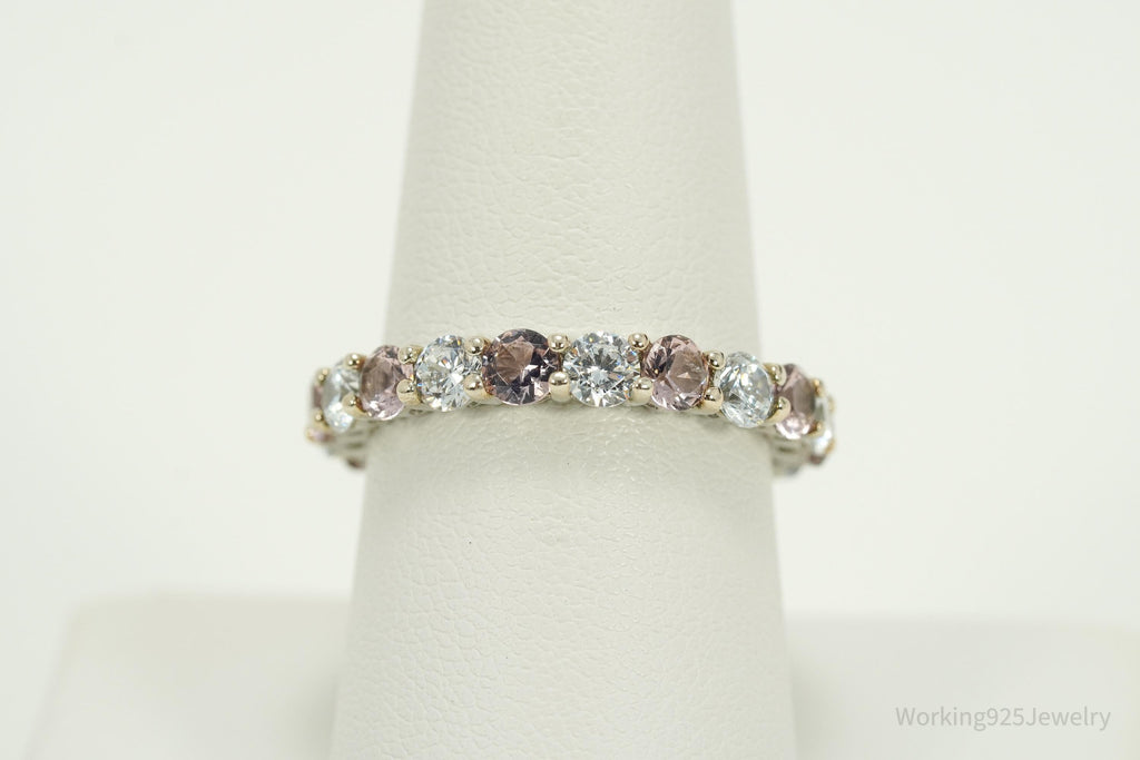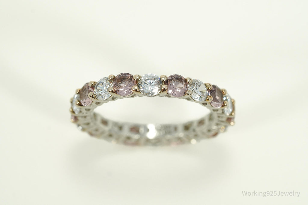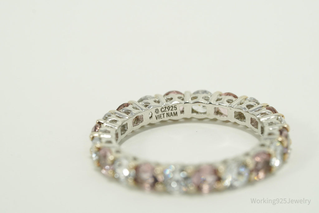 Vintage Cubic Zirconia Platinum Clad Sterling Silver Ring - Size 8