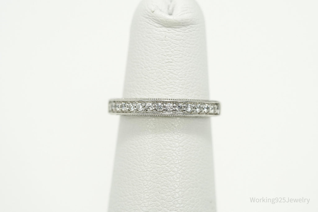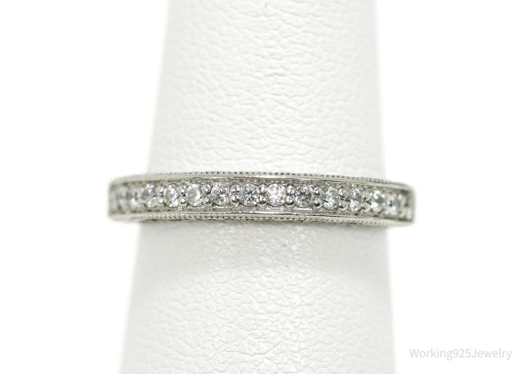 Vintage Cubic Zirconia Sterling Silver Band Ring - Size 3.25