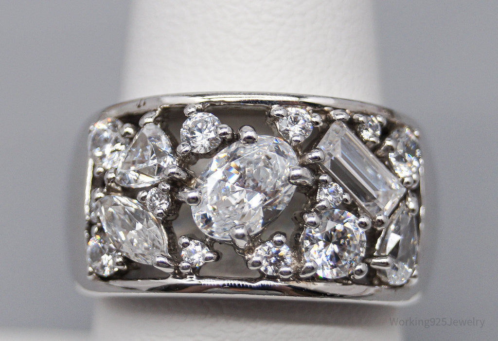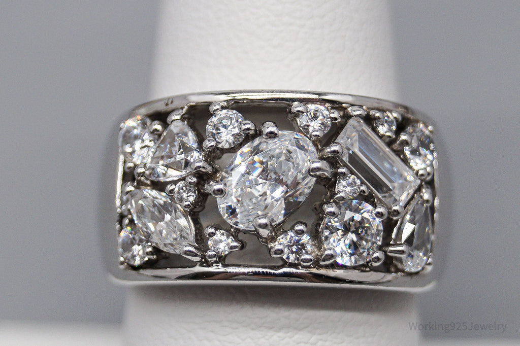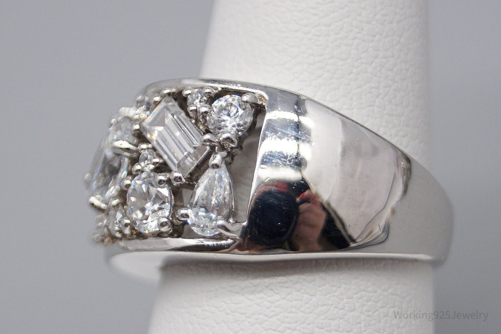 Vintage Cubic Zirconia Sterling Silver Band Ring - Size 7.75