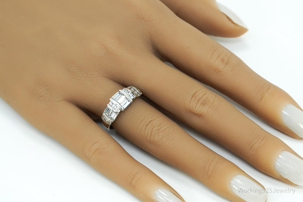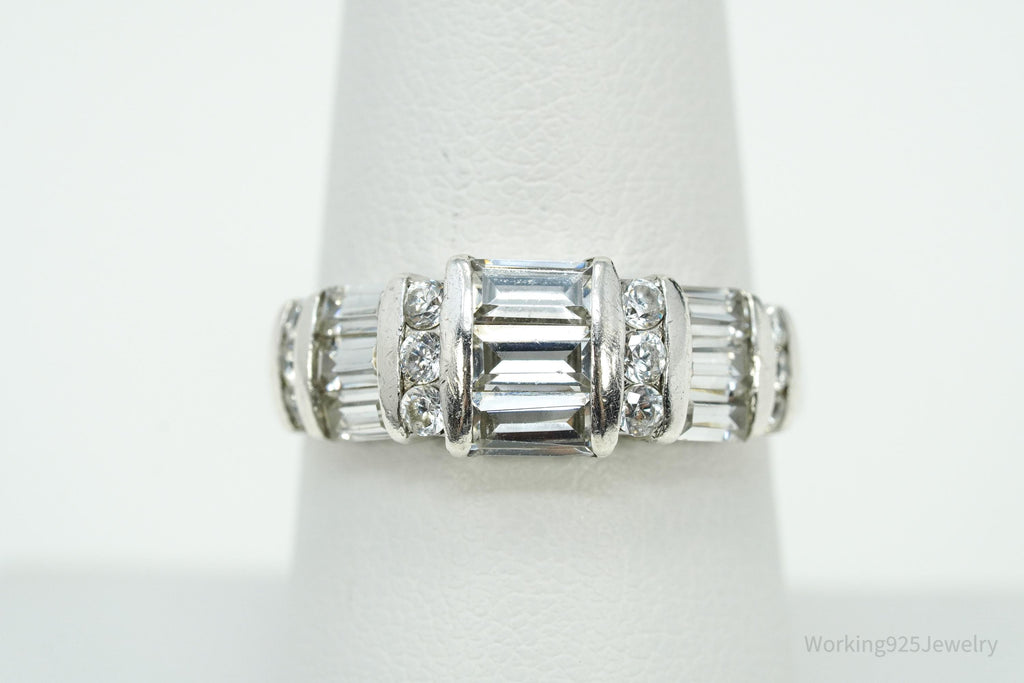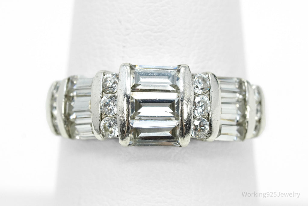 Vintage Cubic Zirconia Sterling Silver Band Ring - Size 7.75